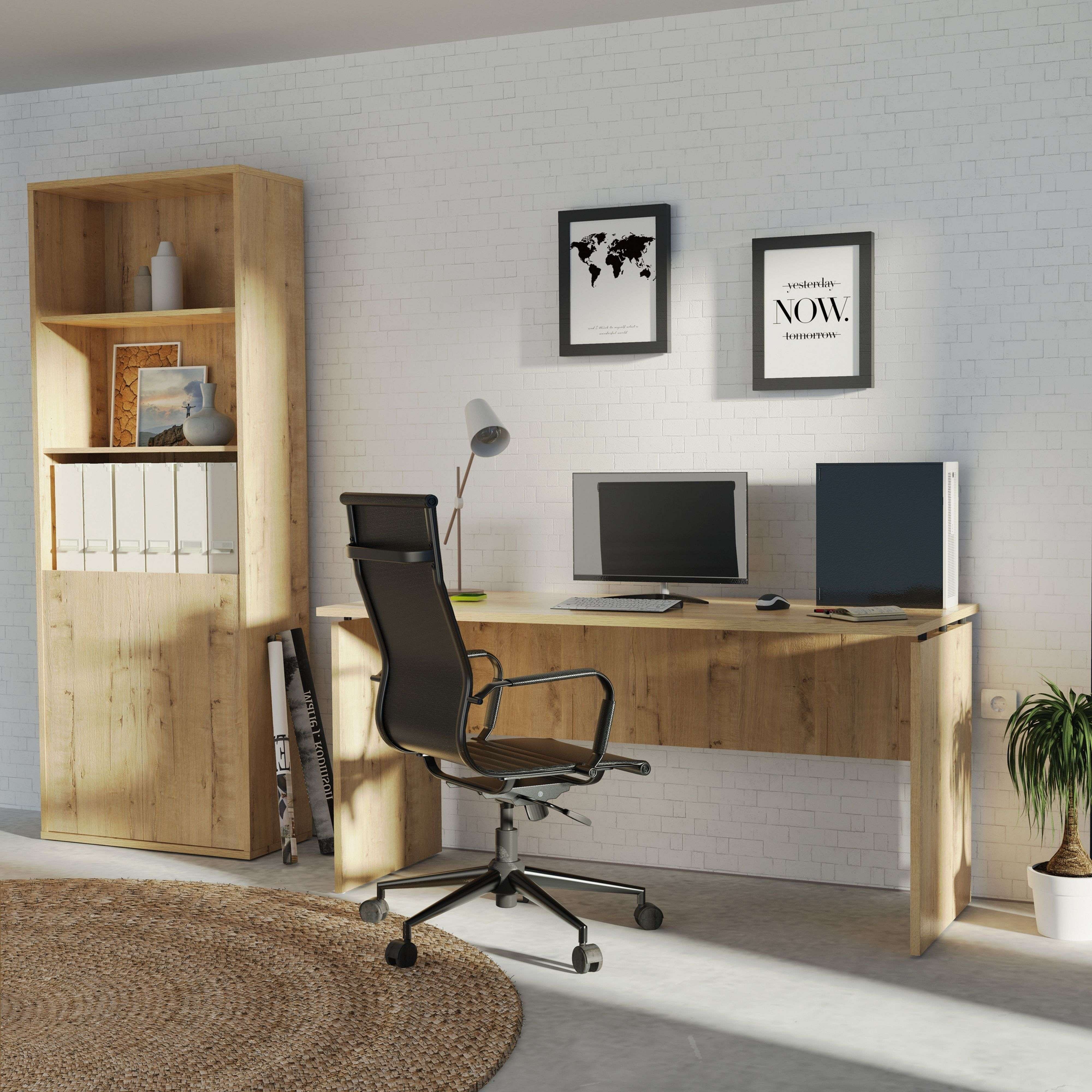 Pack Oficina: 4 Escritorios 155cm + 3 Estanterías + Aparador + Librería Roble