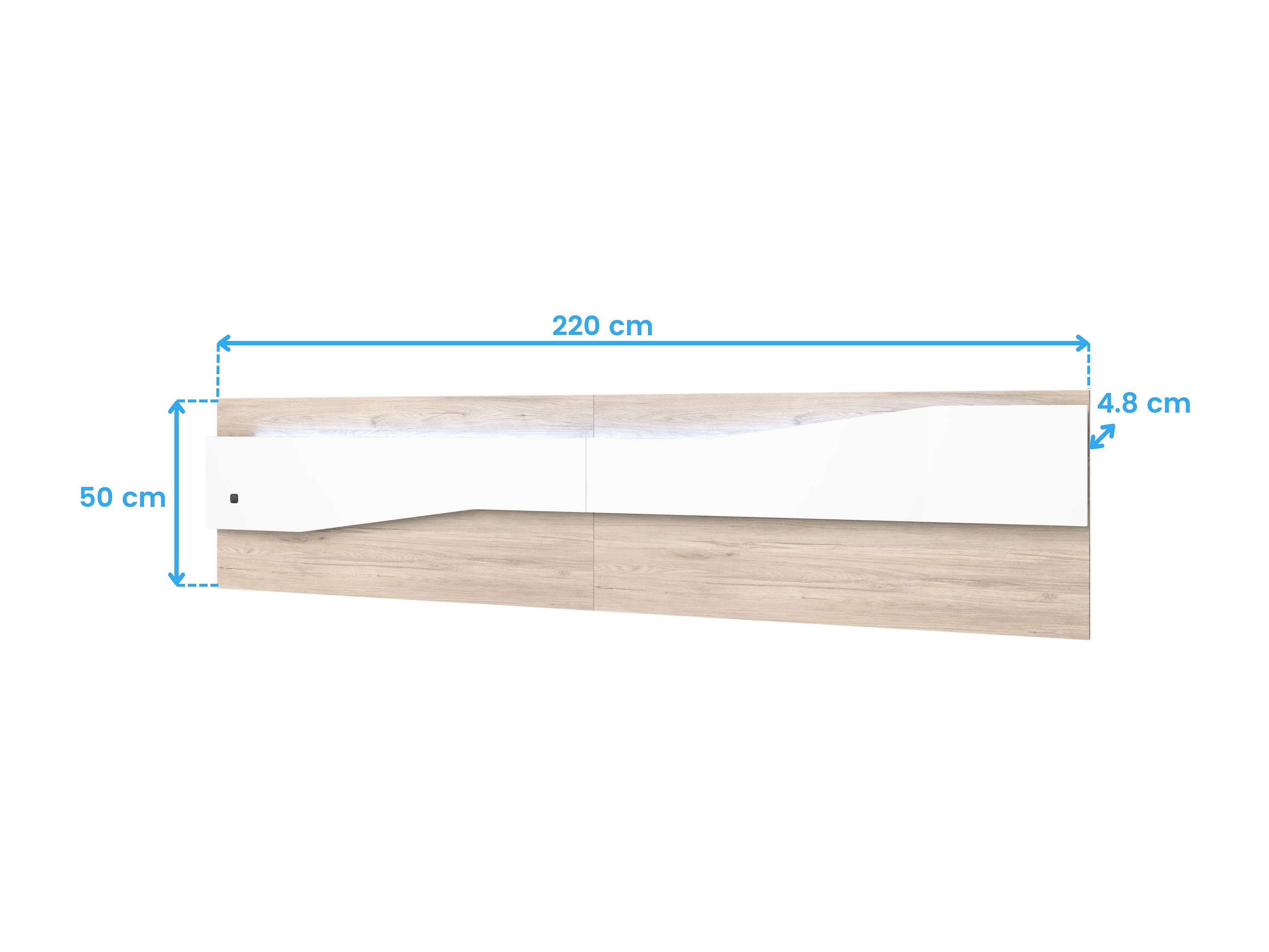Pack Muebles Dormitorio Asimetric Cabecero, 2 Mesitas, Cómoda Blanco/Roble