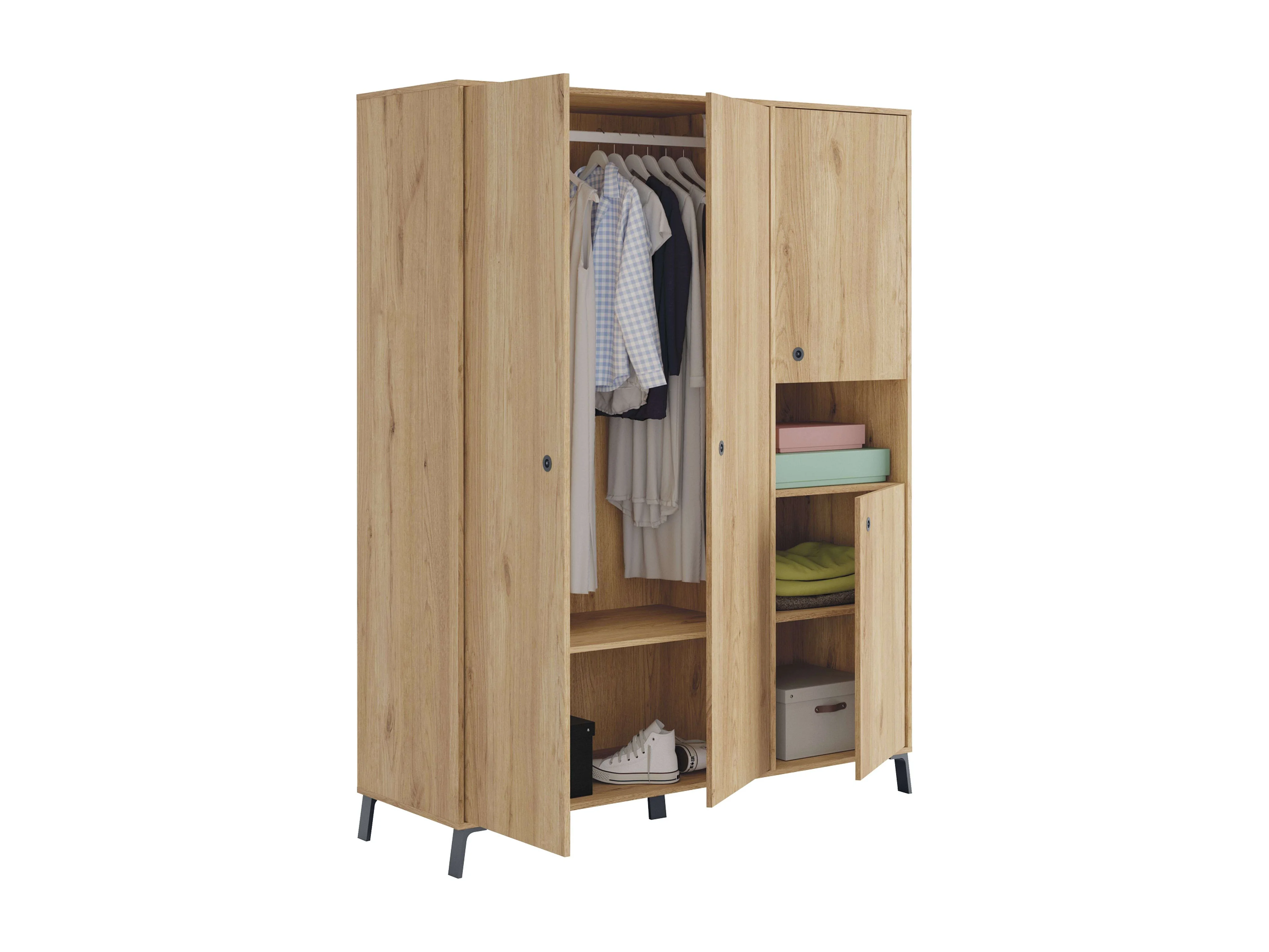 Pack Dormitorio Osaka Roble Japonés Cama 135-140x190 cm, 2 mesitas y Armario