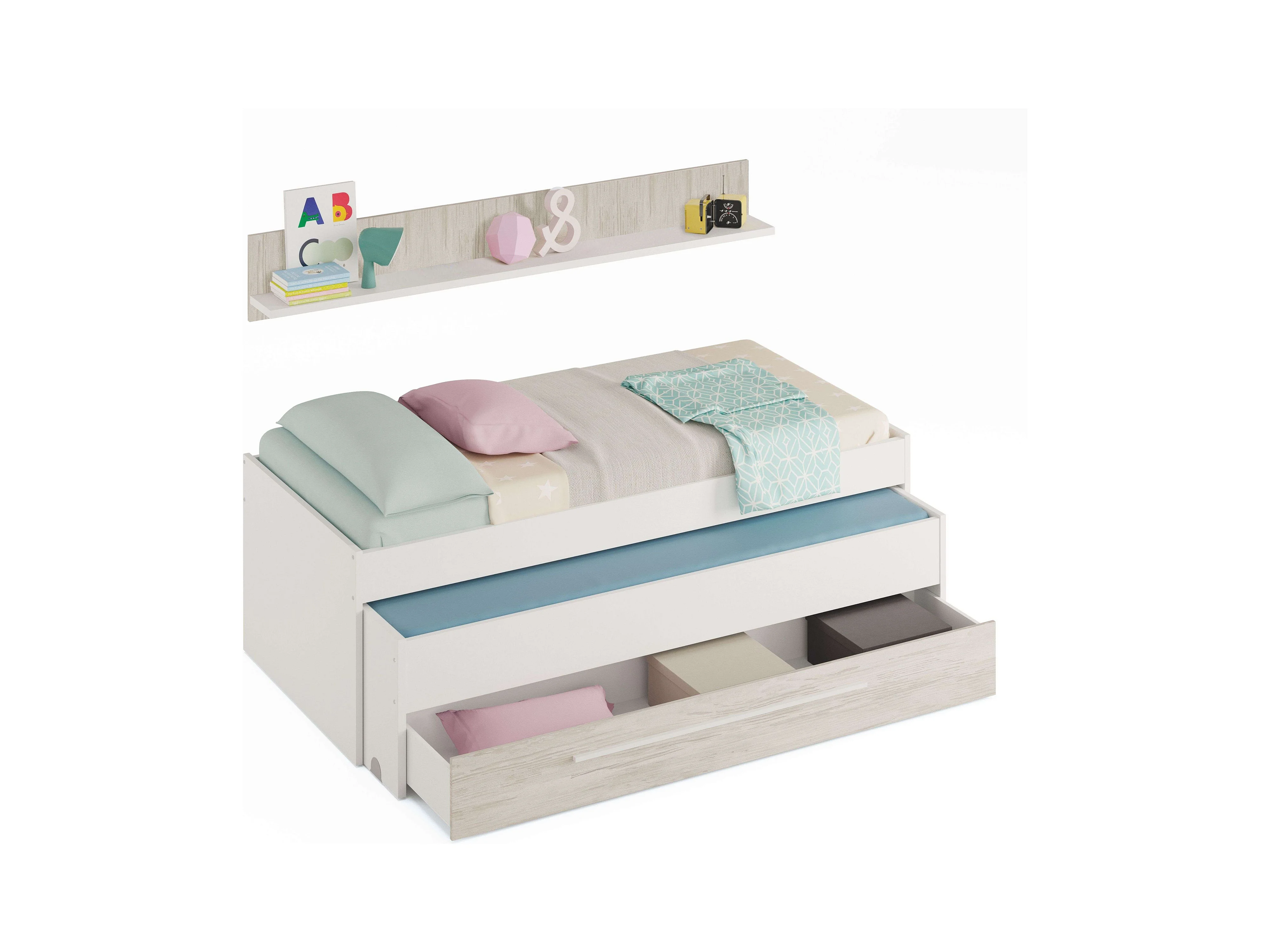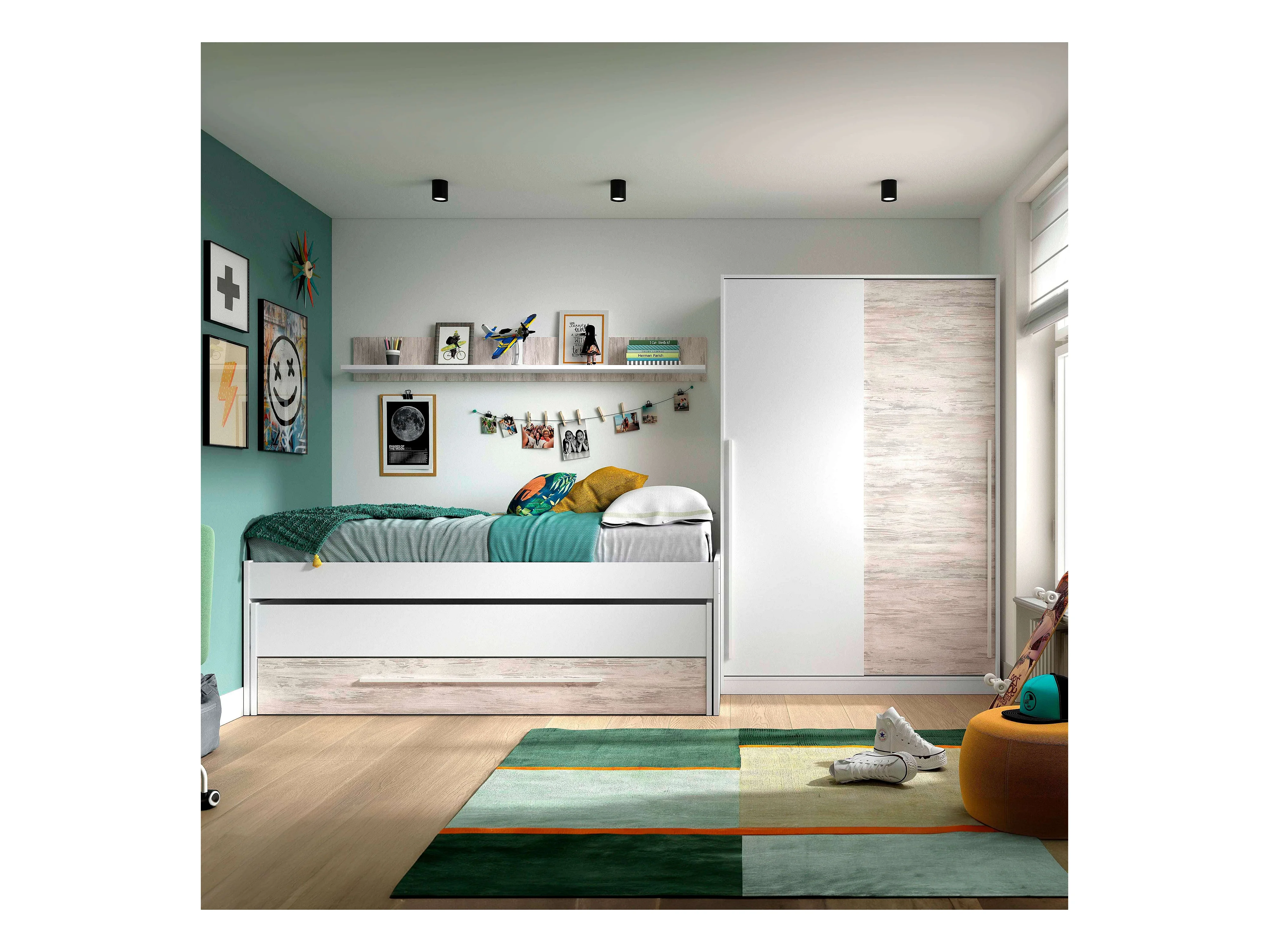 Pack Muebles Dormitorio Juvenil Cama Nido Estante y Armario 90x190 cm