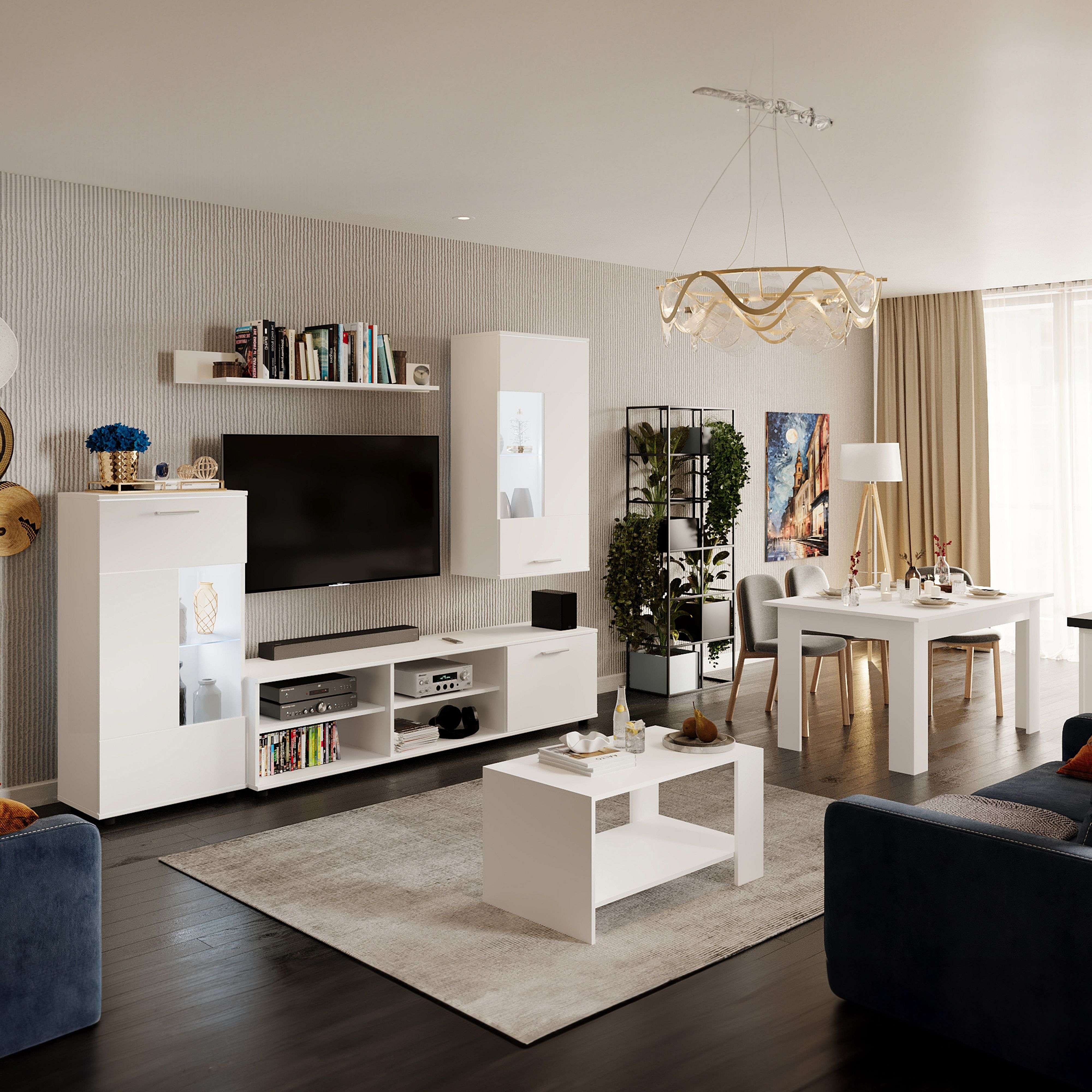 Pack Muebles Salón Belus Blanco: Modular + Mesas Centro y Comedor