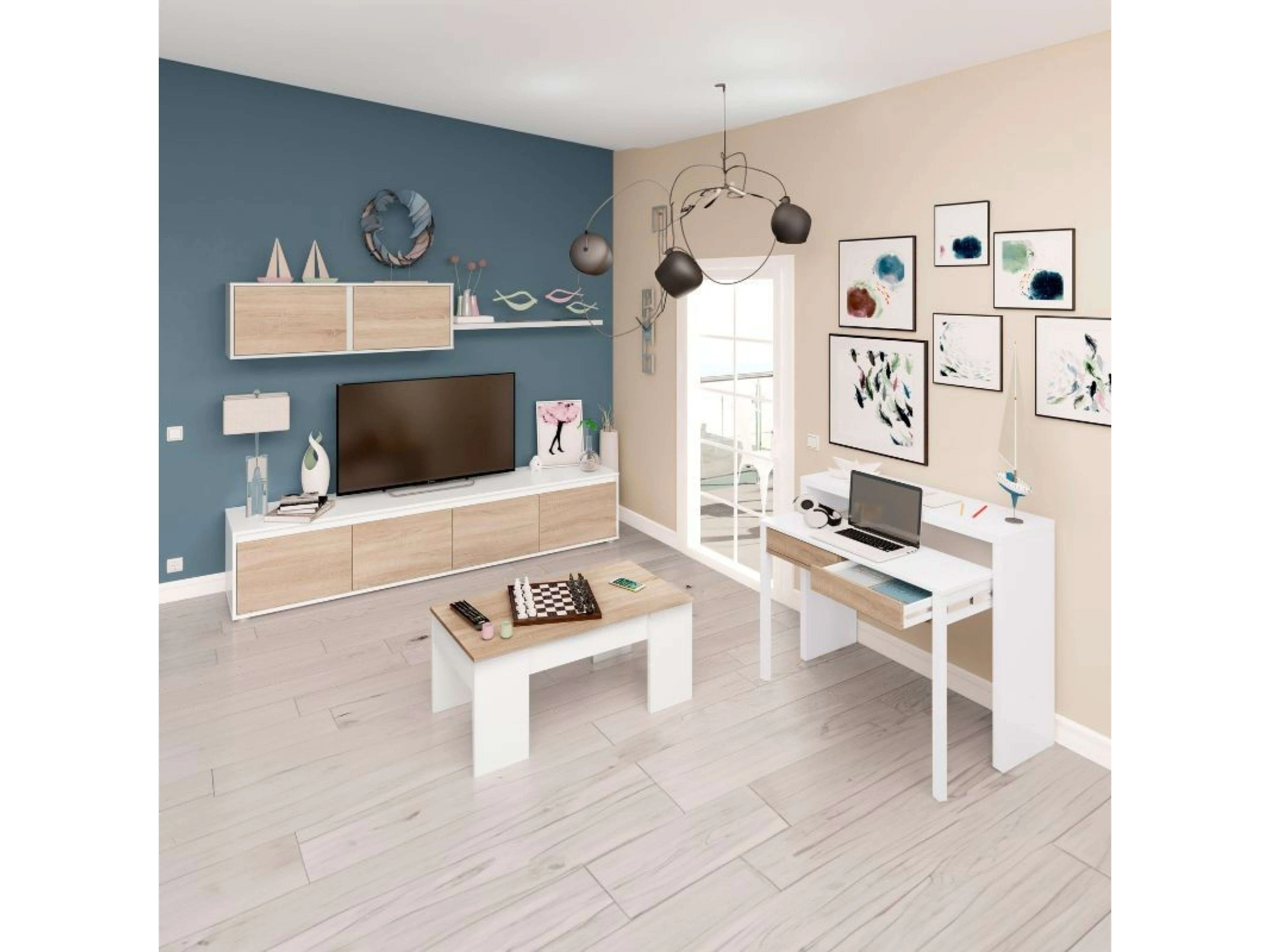 Pack Muebles Salón Completo Roble Blanco: Mueble + Mesa + Escritorio