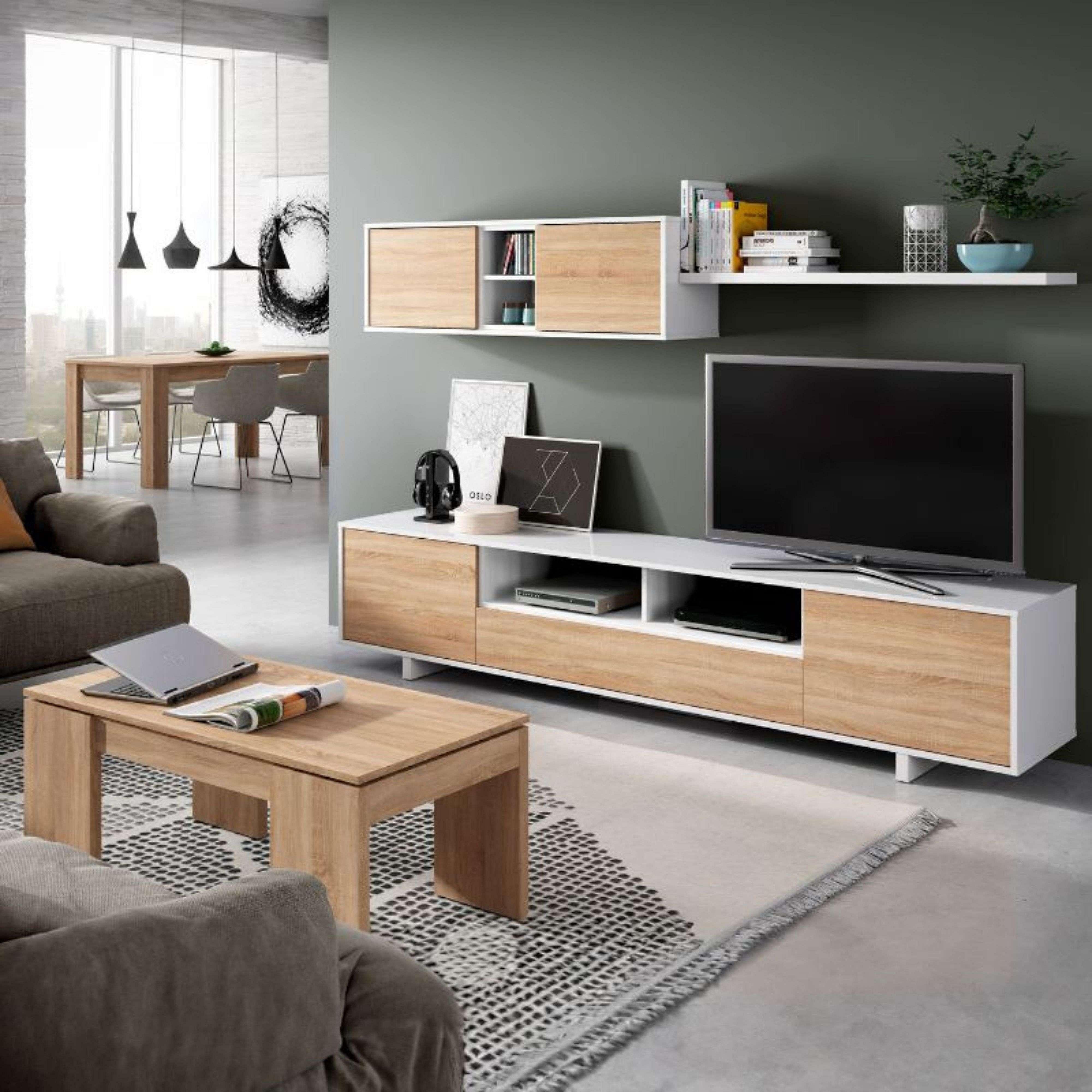 Pack Muebles Salón Moderno Ethna Blanco Mate y Natur
