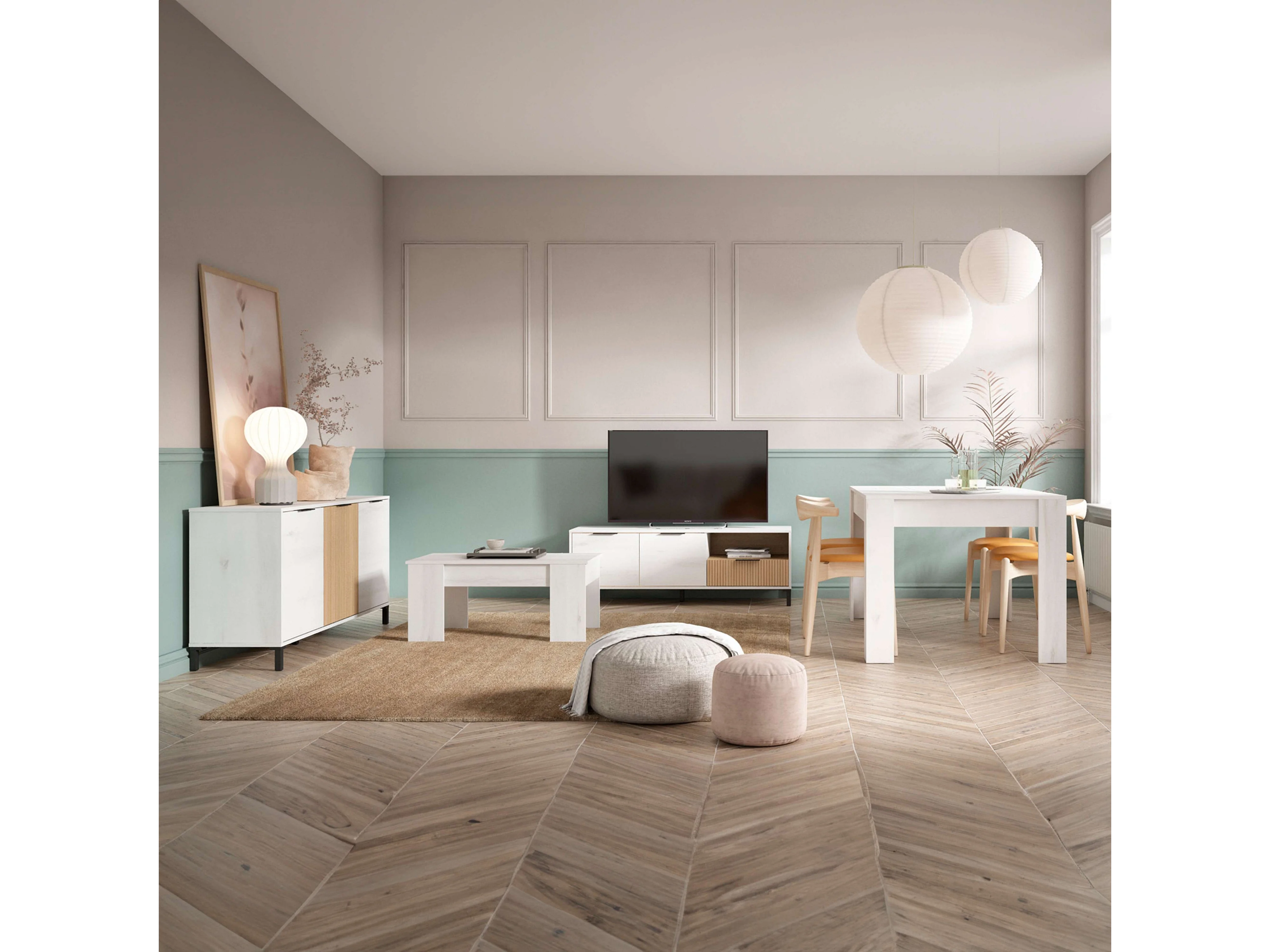Pack Muebles Salón Comedor Elis Nórdico Blanco Natural con TV y Aparador