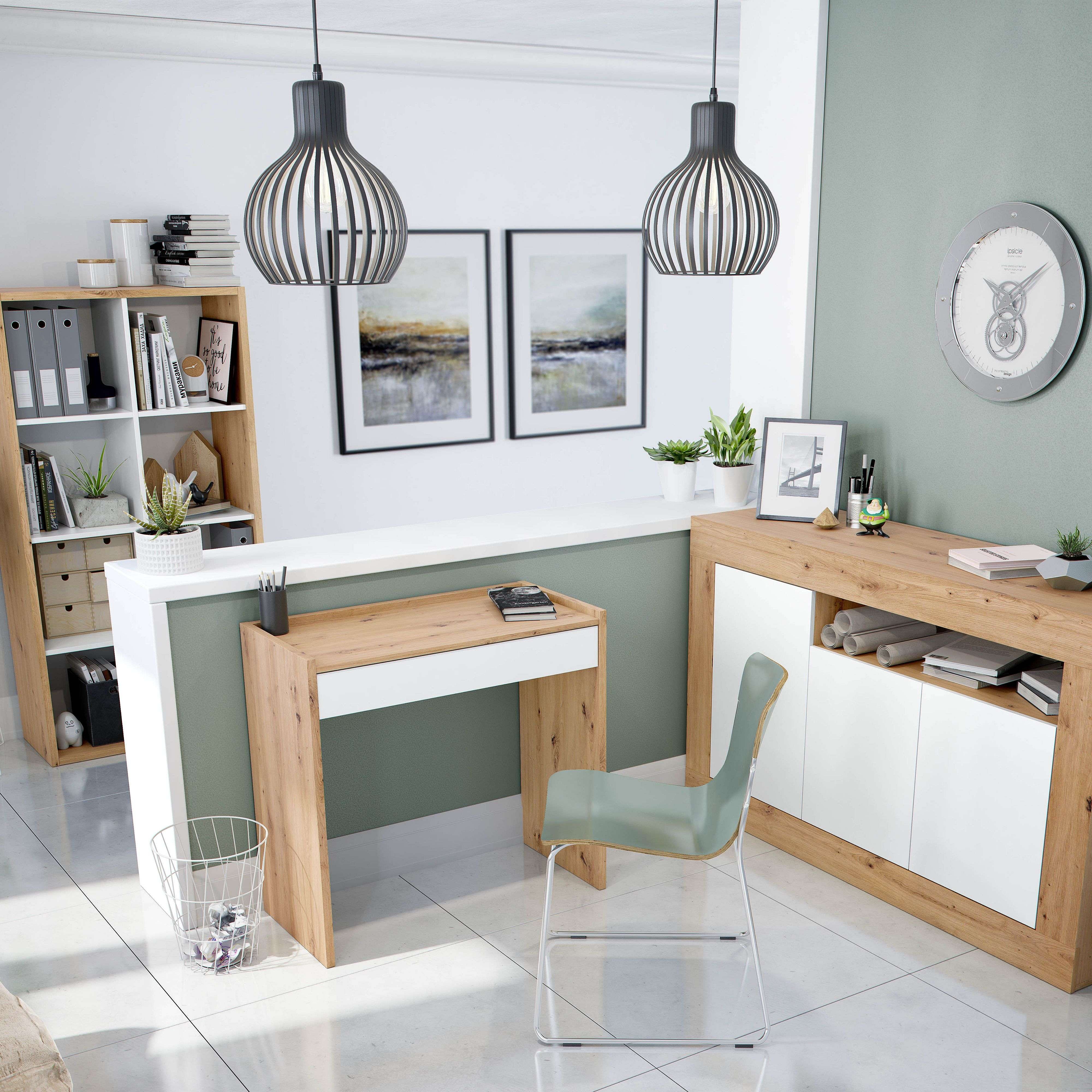 Pack Escritorio Estantería Juvenil Blanco Artik y Roble Nodi Oficina