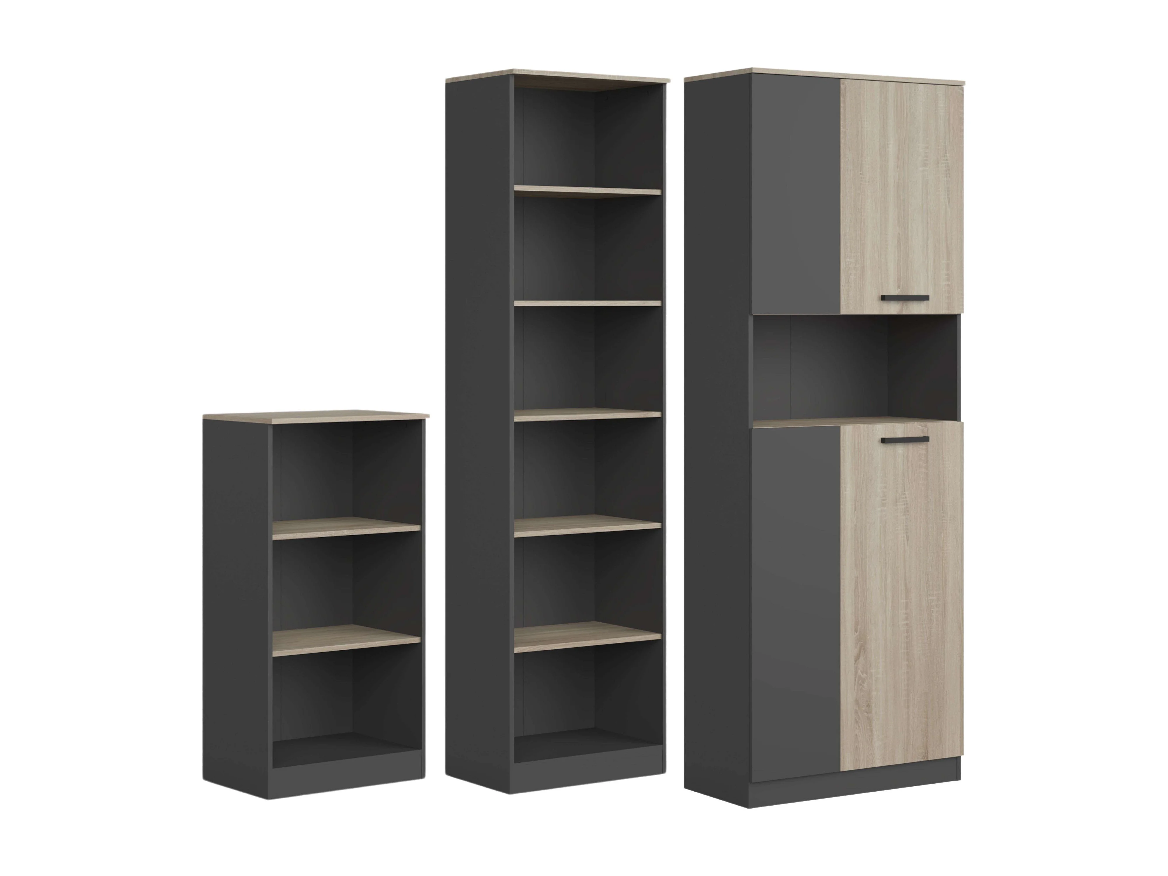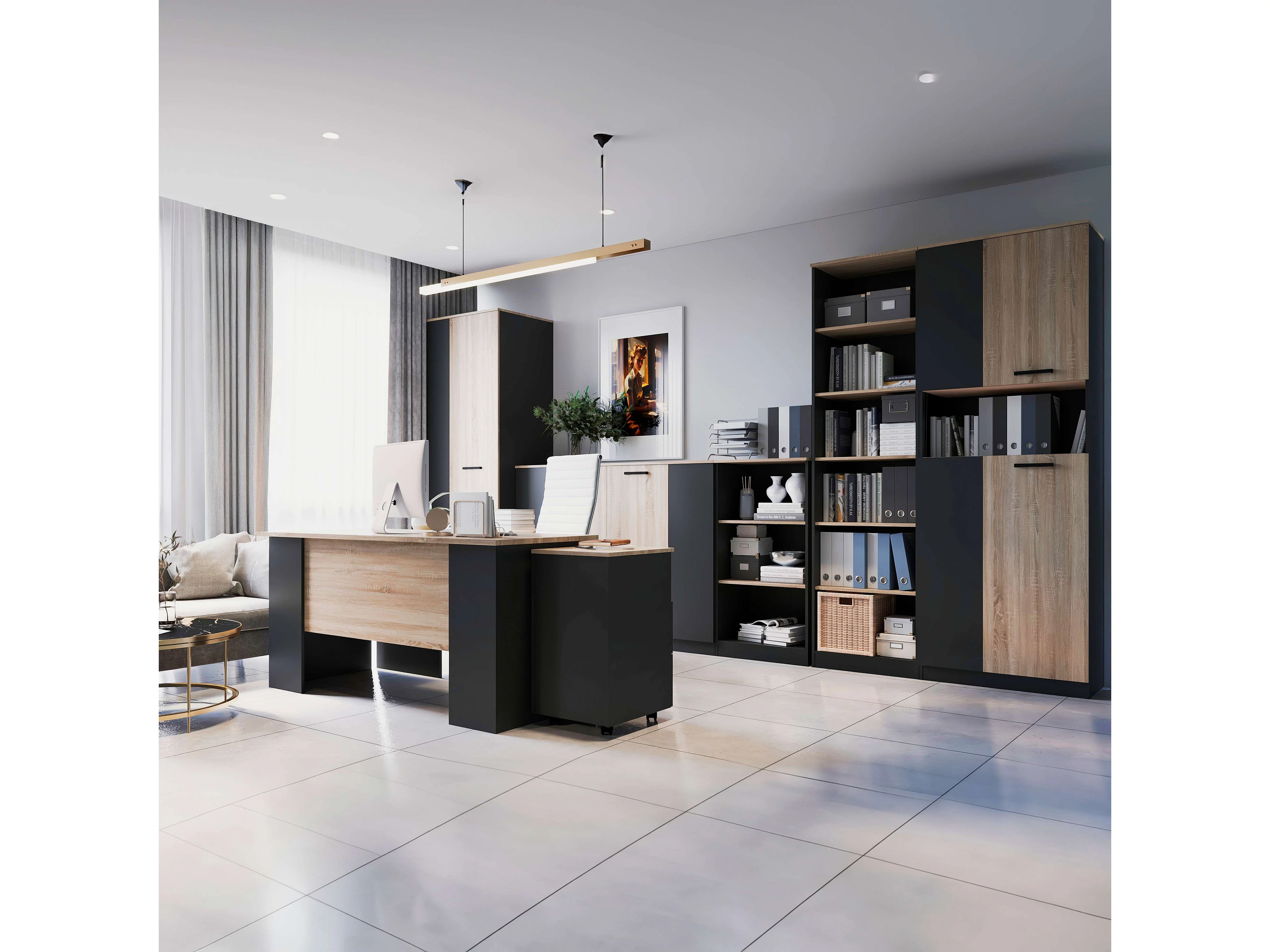 Pack Oficina Nibis Industrial: Escritorio, Aparador, Cajonera, Estanterías