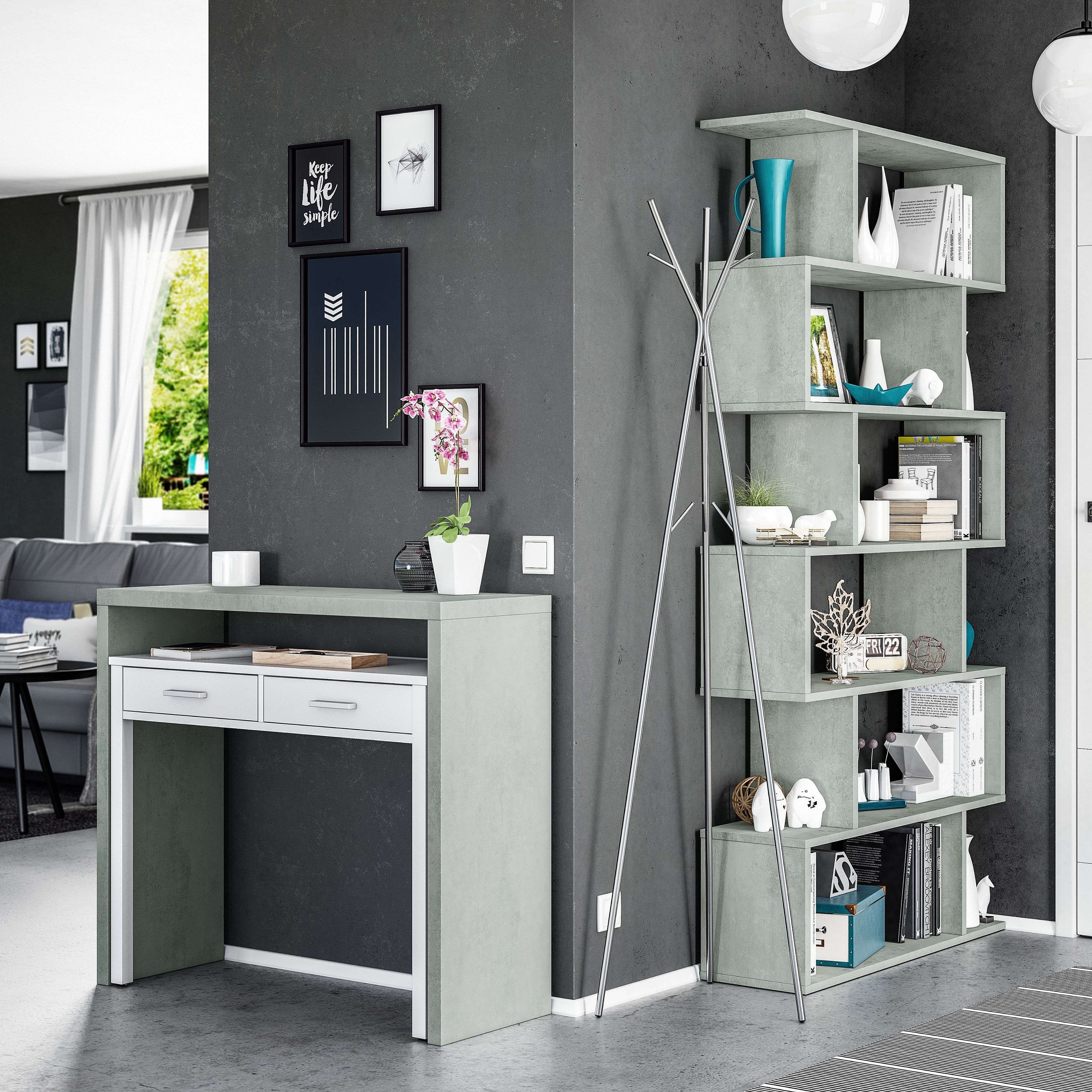 Pack Plutón Escritorio Extensible y Estantería Moderna Cemento/Blanco