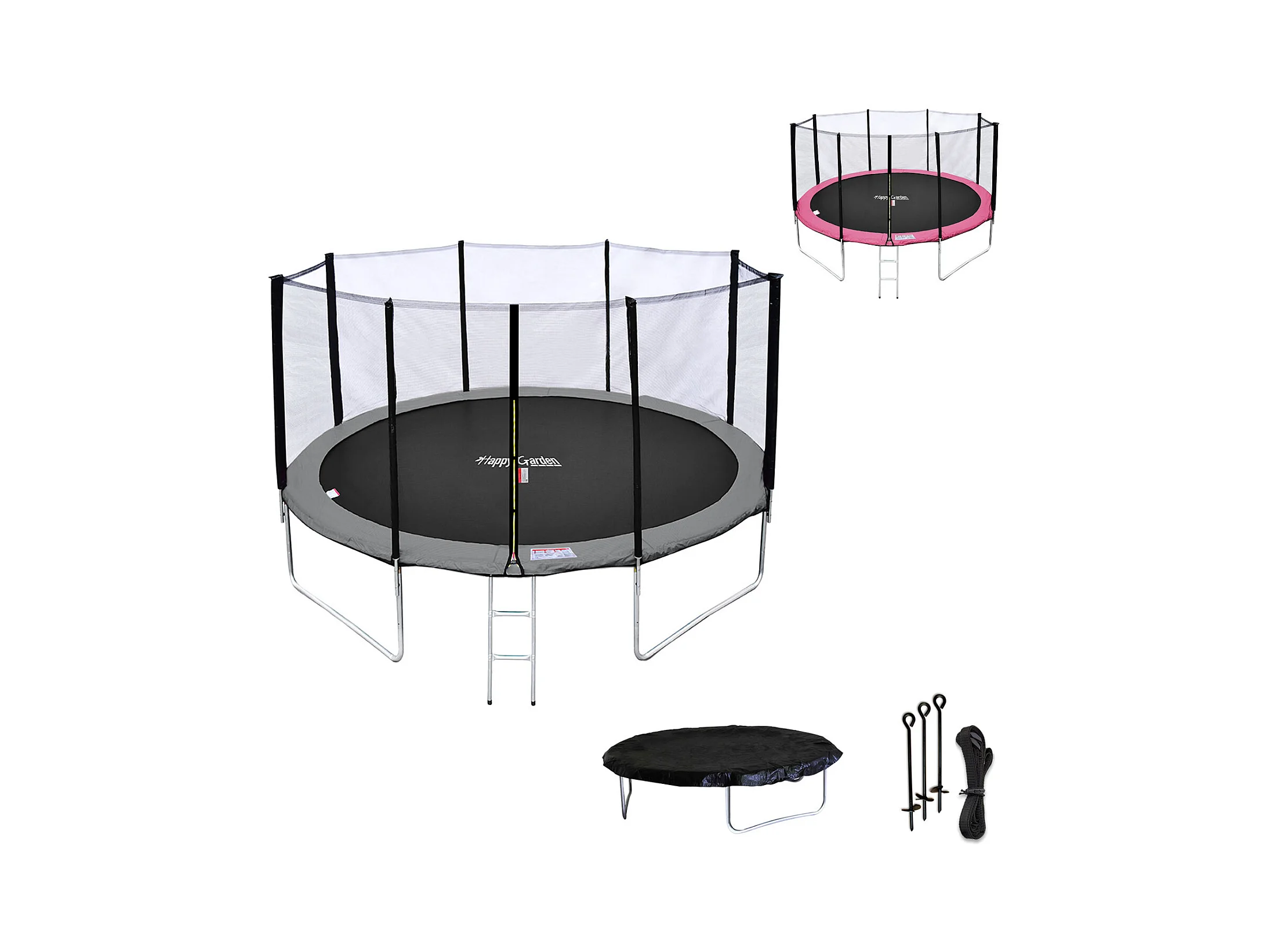 Cama elástica de 370cm reversible gris/rosa, Pack trampolín PERTH + red de seguridad + escalera + lona + kit de anclaje.