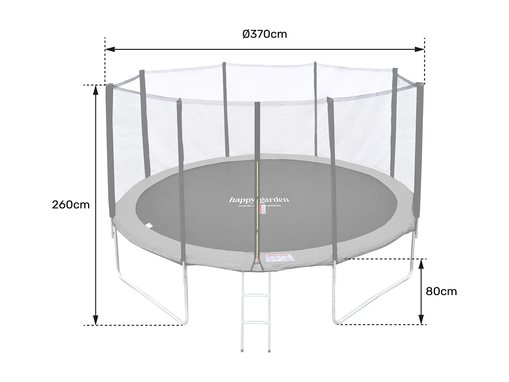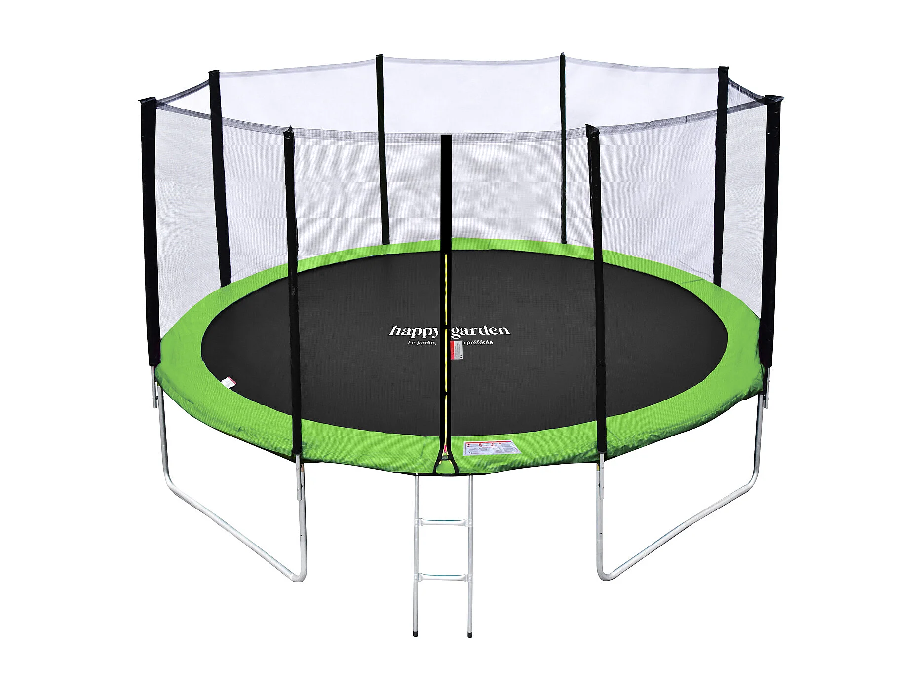 Cama elástica de 370cm reversible verde/azul, Pack trampolín PERTH + red de seguridad + escalera + lona + kit de anclaje.