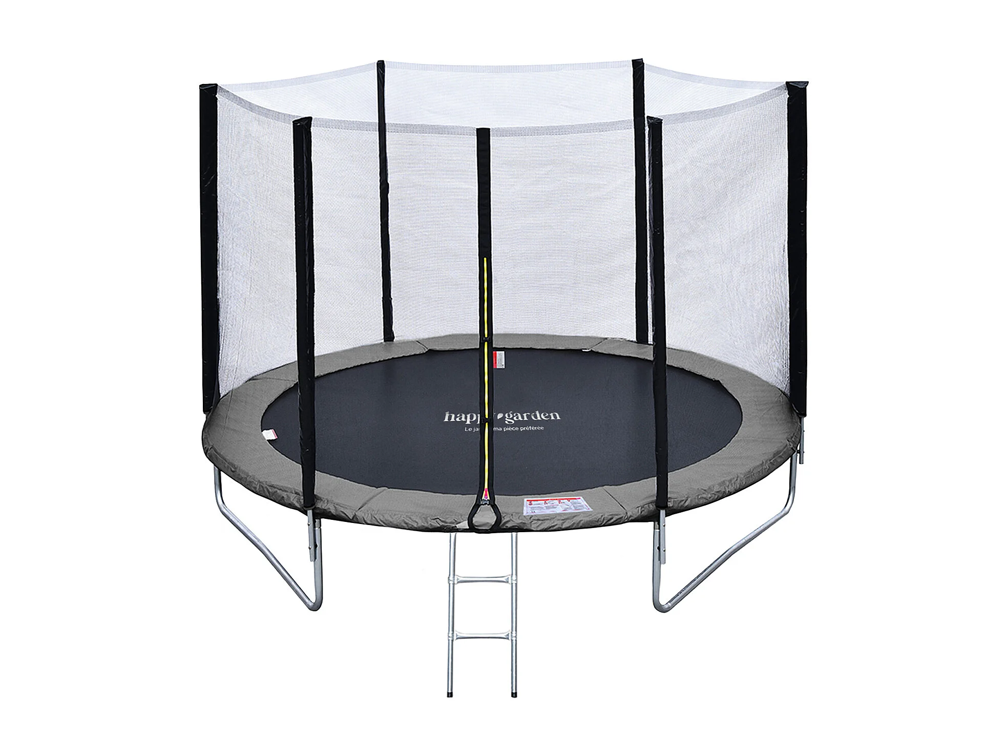 Cama elástica de 180 cm reversible gris / rosa CAIRNS + red de seguridad + escalera + lona + kit de anclaje.