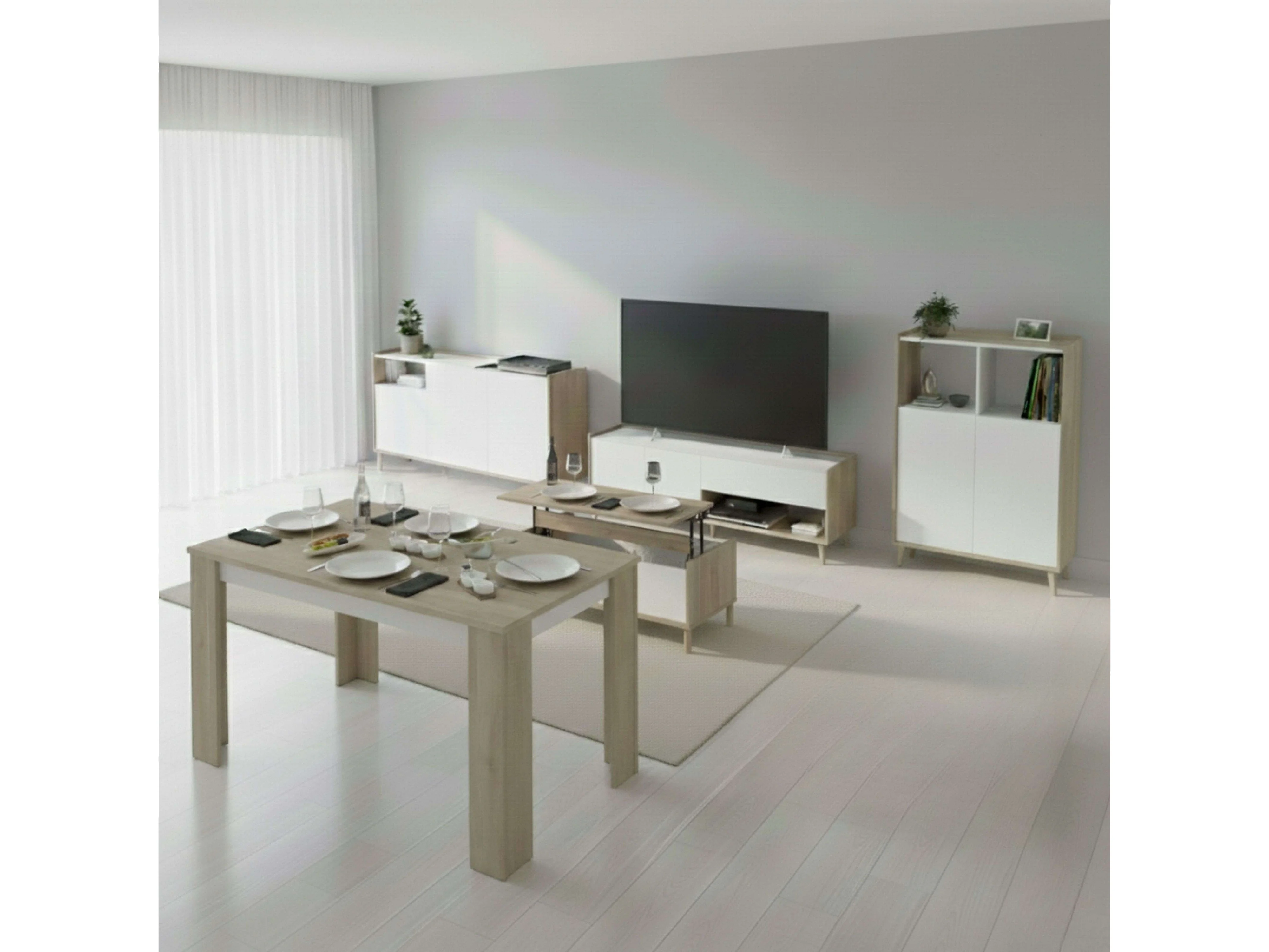 Pack salón Azzaro roble japonés y blanco (mueble tv y mesa de comedor)