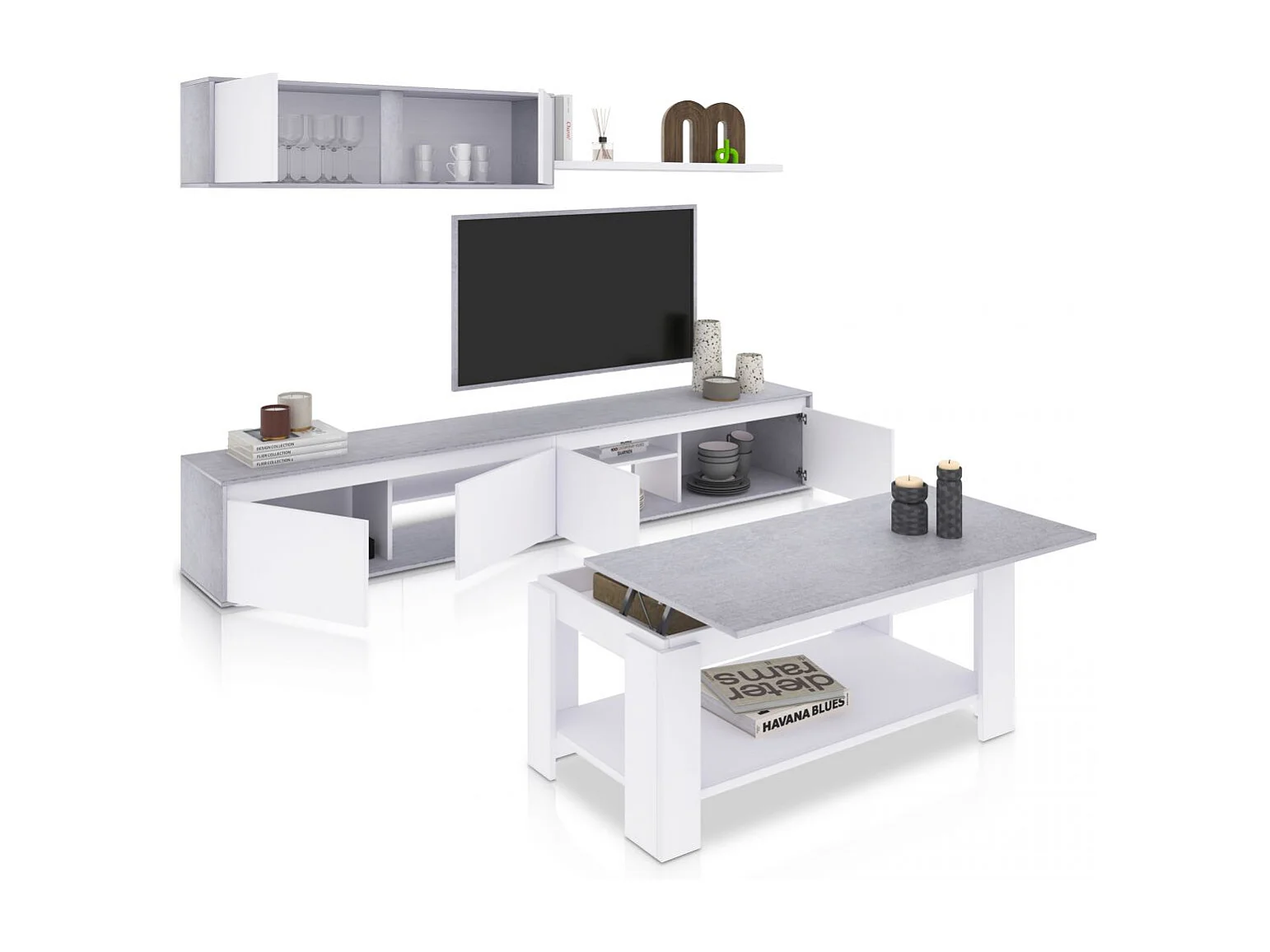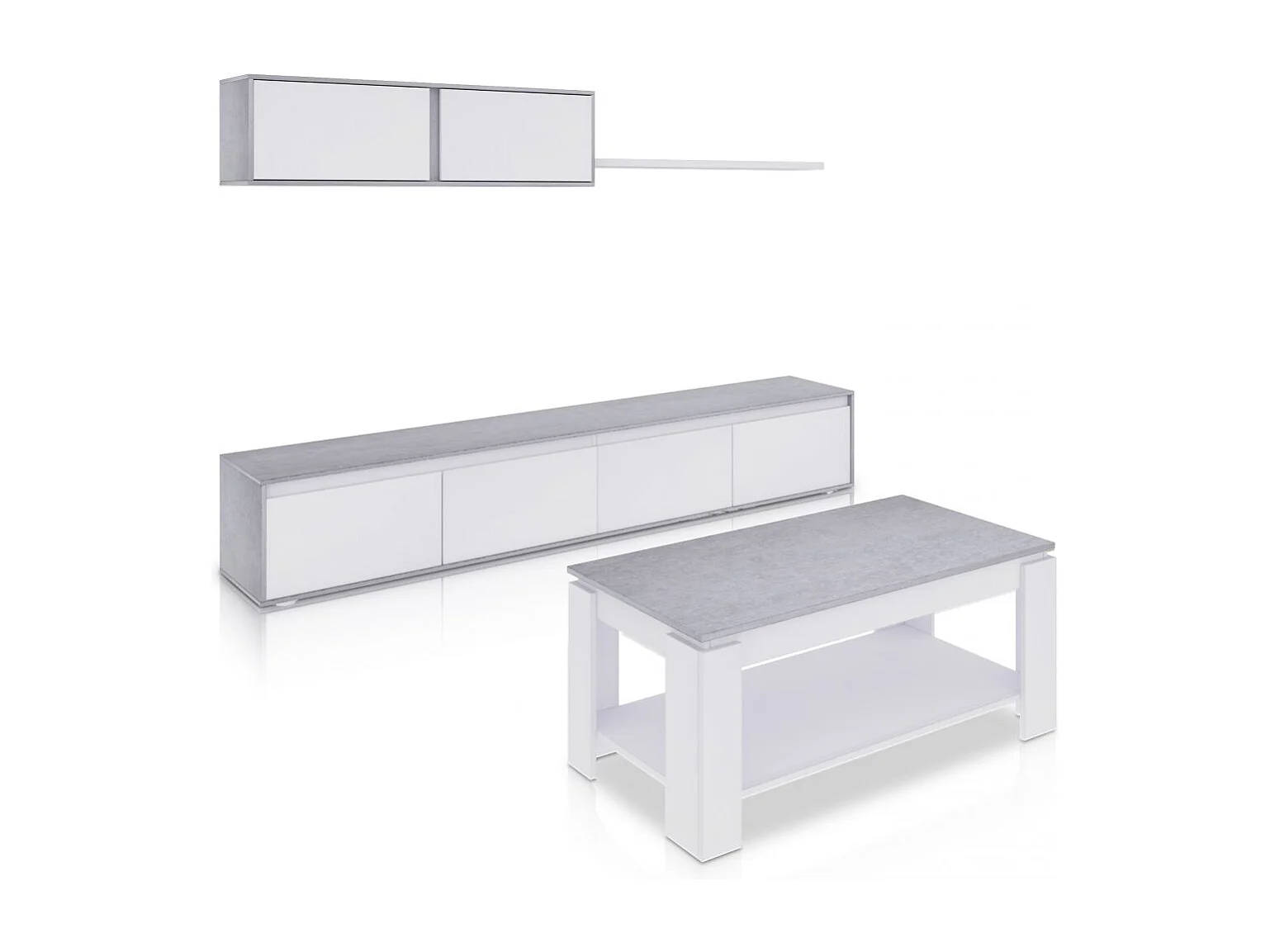 Pack salón con mesa de centro Arlet Plus Blanco Artik (Blanco Mate) - Gris Cemento