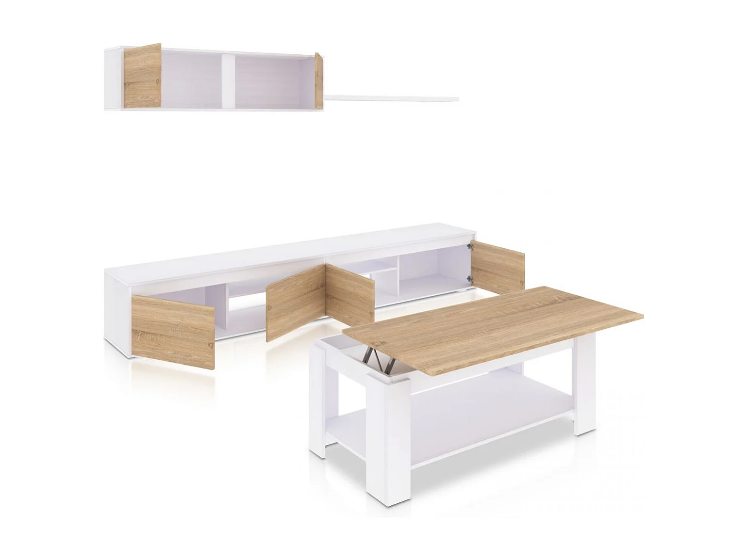 Pack salón con mesa de centro Arlet Plus Blanco Artik (Blanco Mate) - Roble Canadian