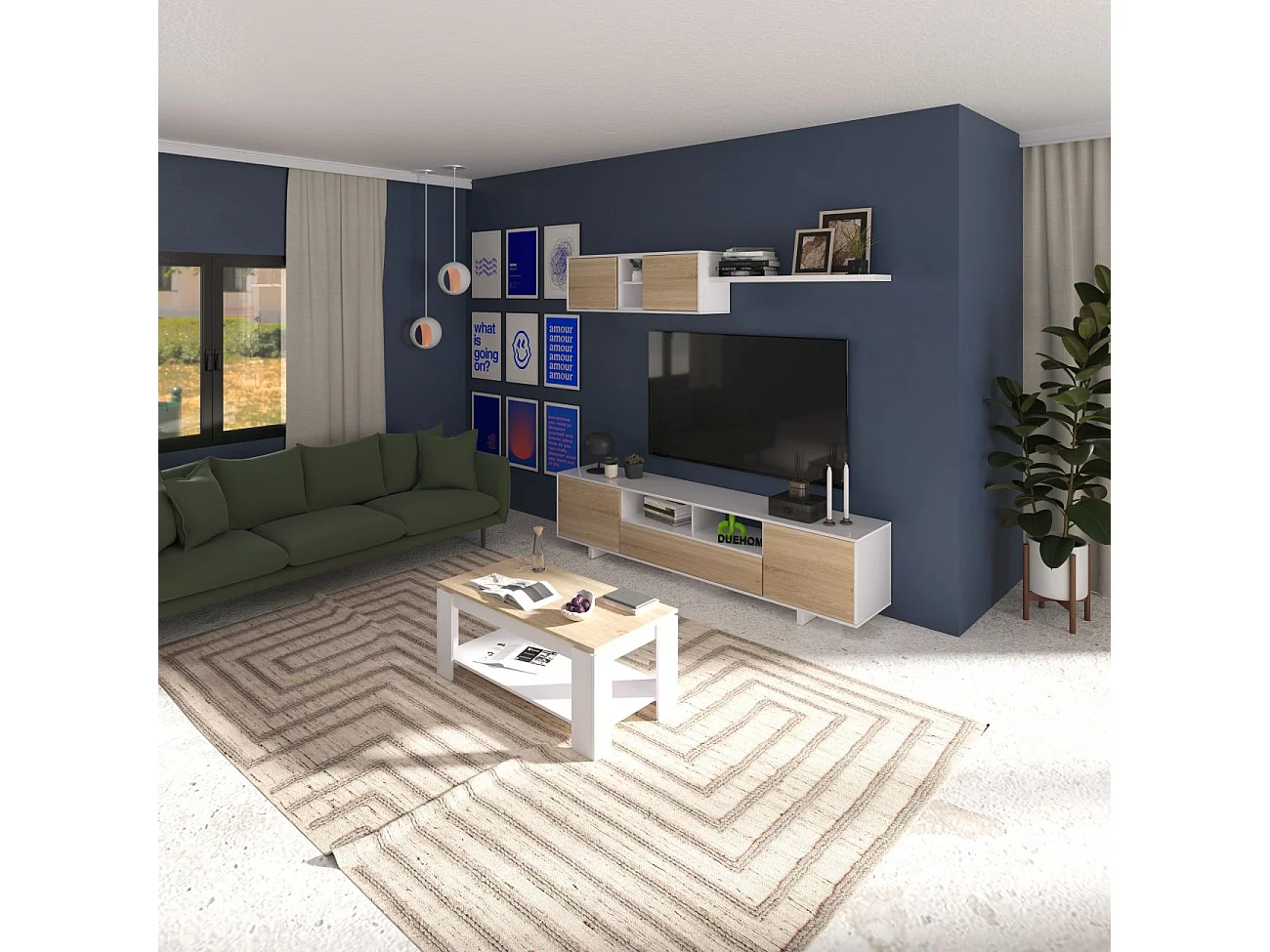 Pack salón con mesa de centro Kenzo Plus V1 Blanco Artik (Blanco Mate) - Roble Canadian