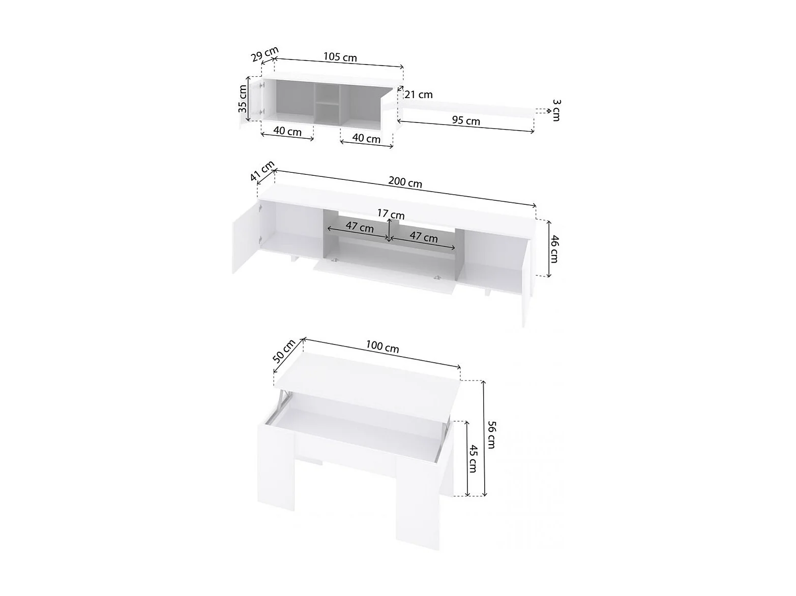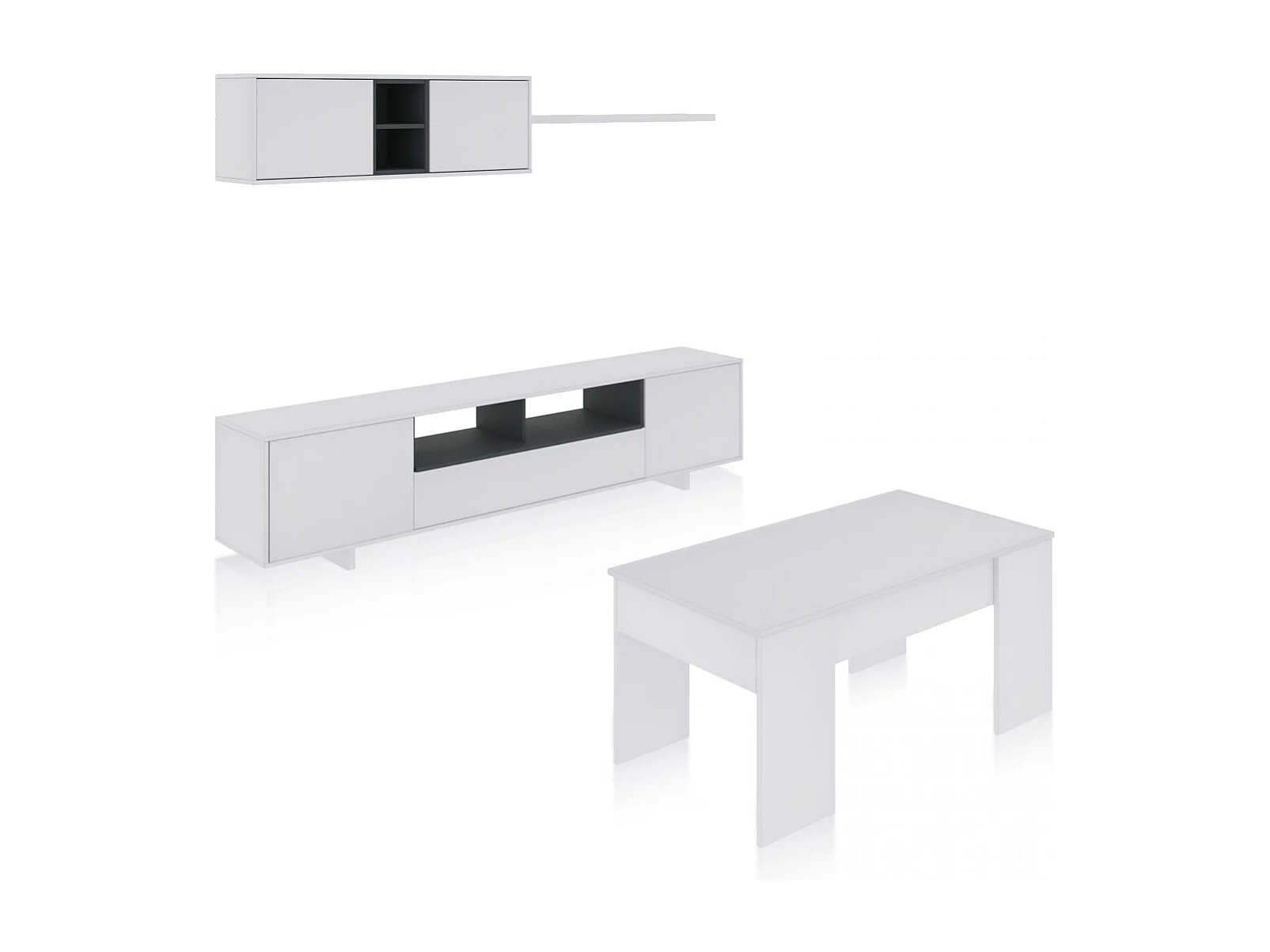 Pack salón con mesa de centro Kenzo Plus V2 Blanco Brillo - Gris Antracita