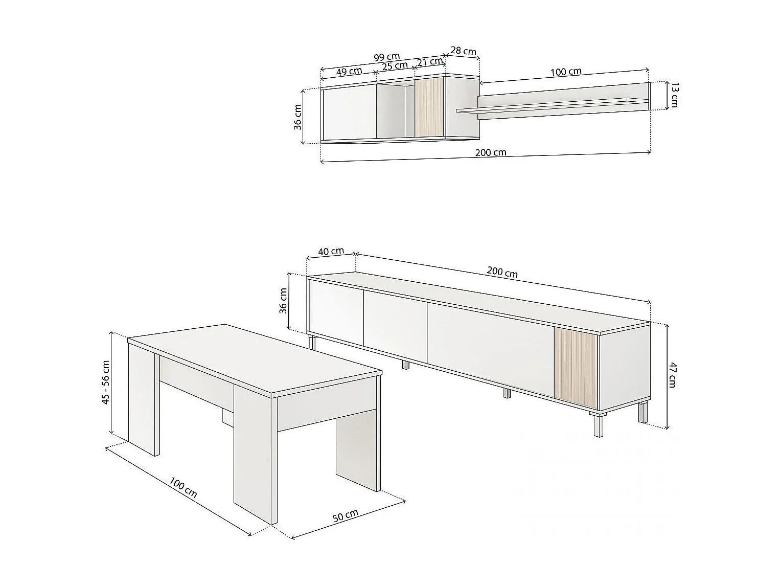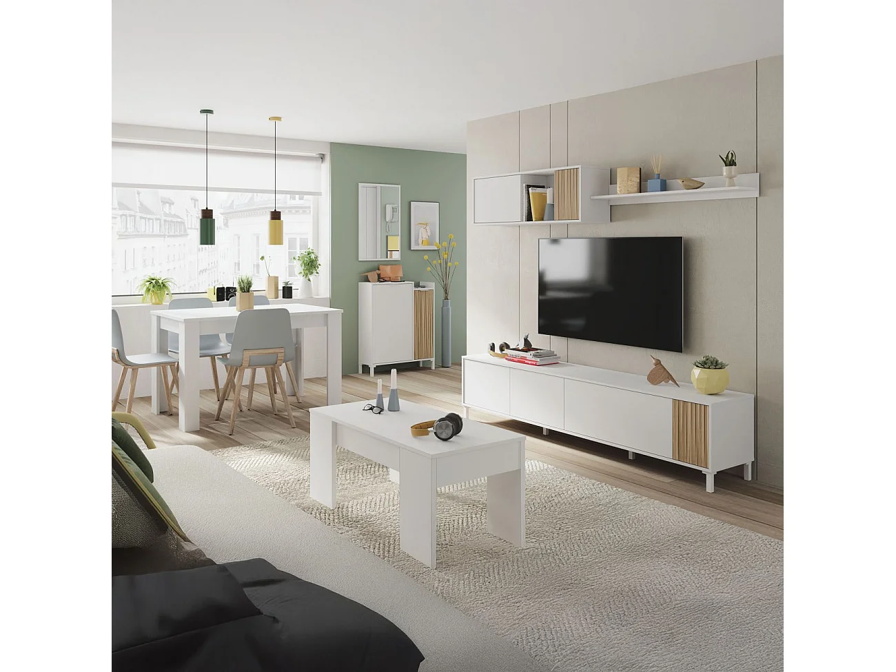 Pack salón con mesa de centro Nitza Plus V2 Blanco Artik (Blanco Mate) - Natur