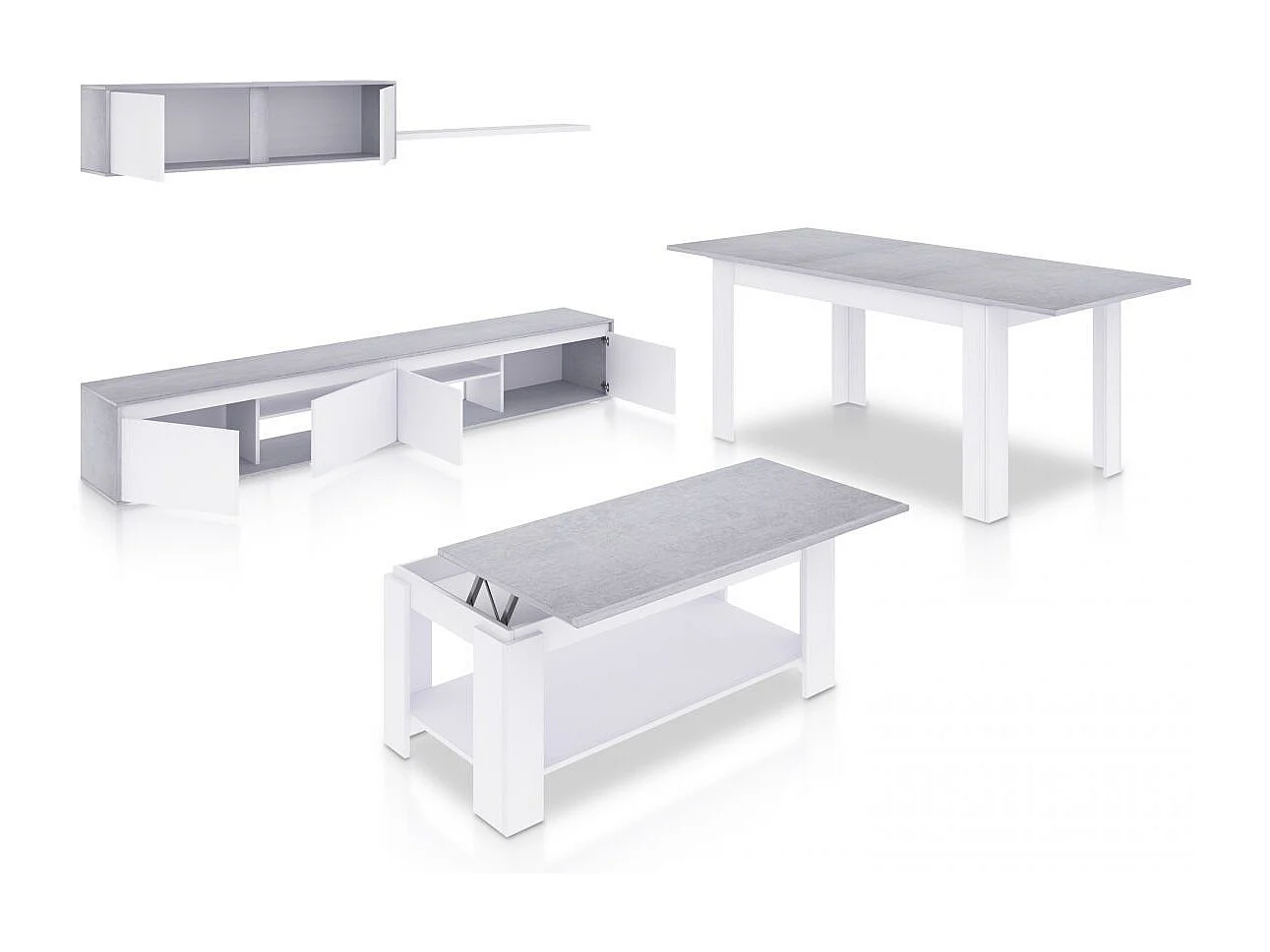 Pack salón con mesa de centro y mesa de comedor Arlet Max Blanco Artik (Blanco Mate) - Gris Cemento