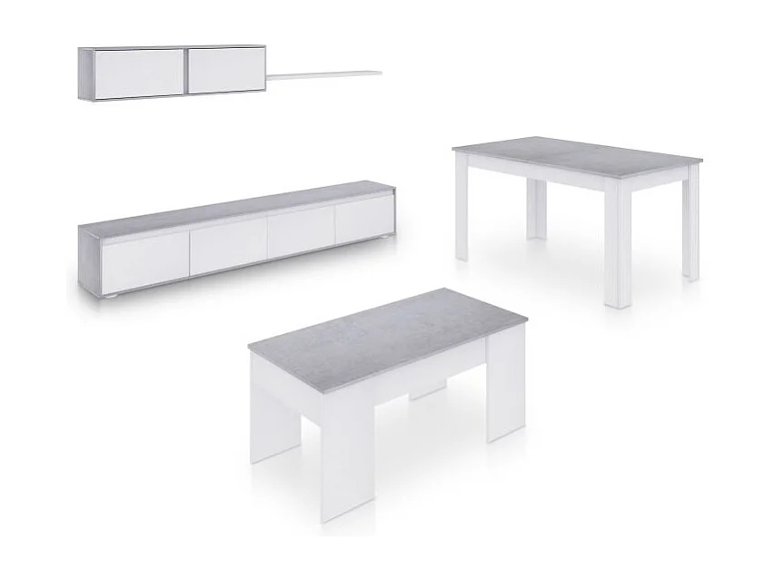 Pack salón con mesa de centro y mesa de comedor Arlet Max V2B Blanco Artik (Blanco Mate) - Gris Cemento