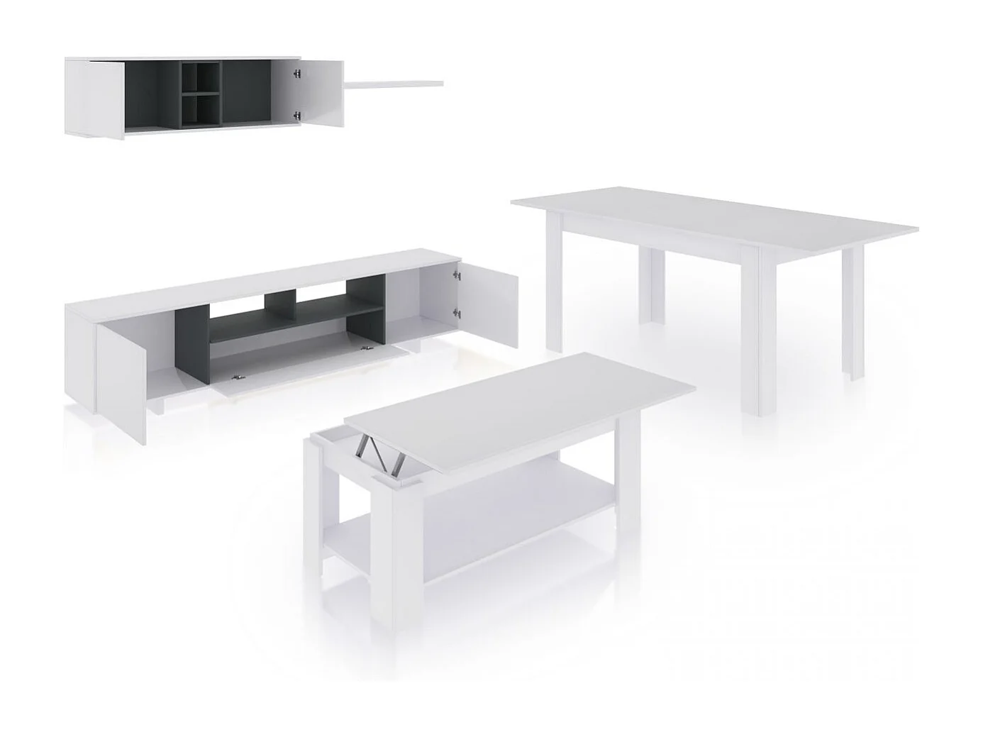 Pack salón con mesa de centro y mesa de comedor Kenzo Max V1A Blanco Brillo - Gris Antracita
