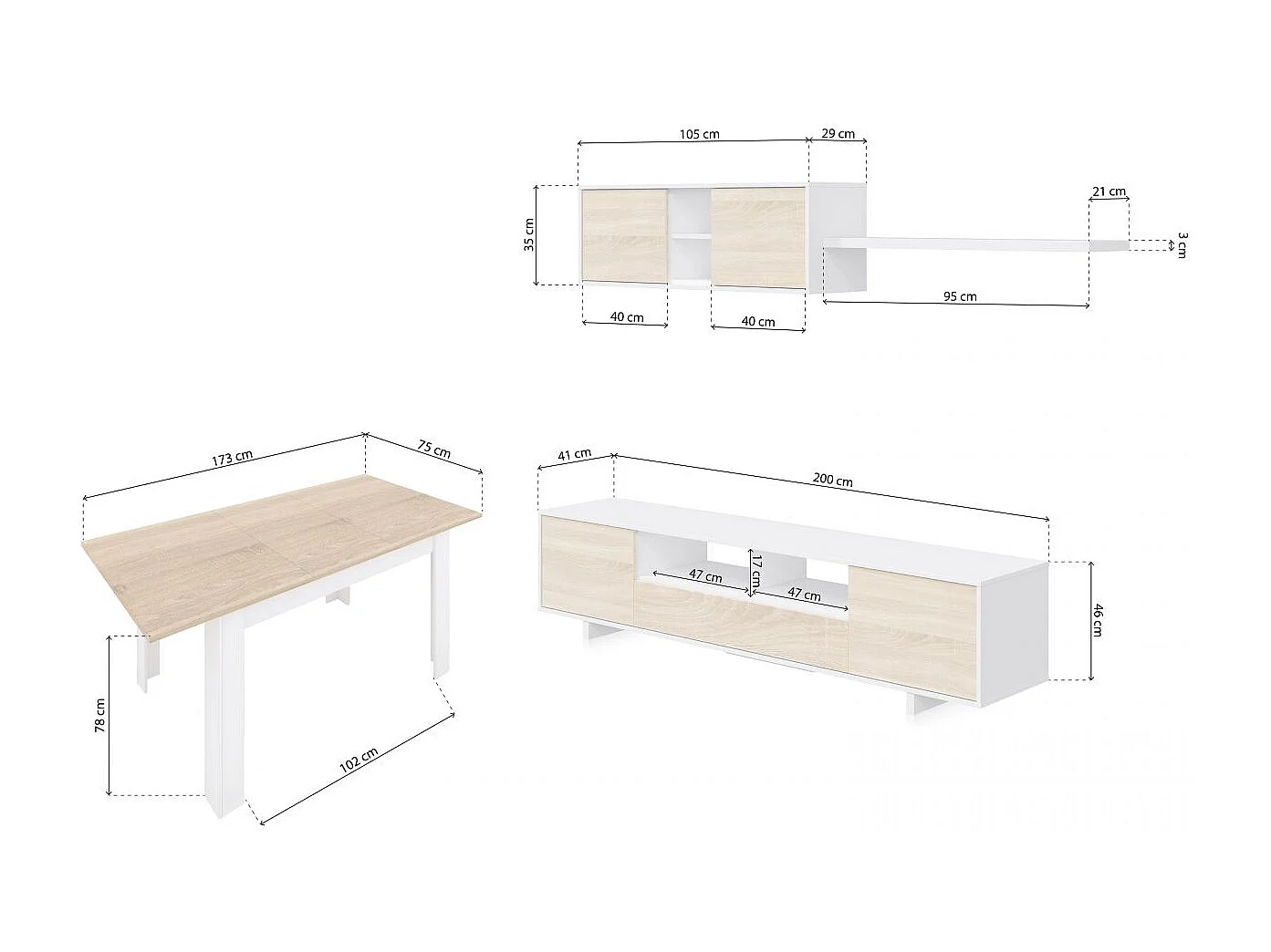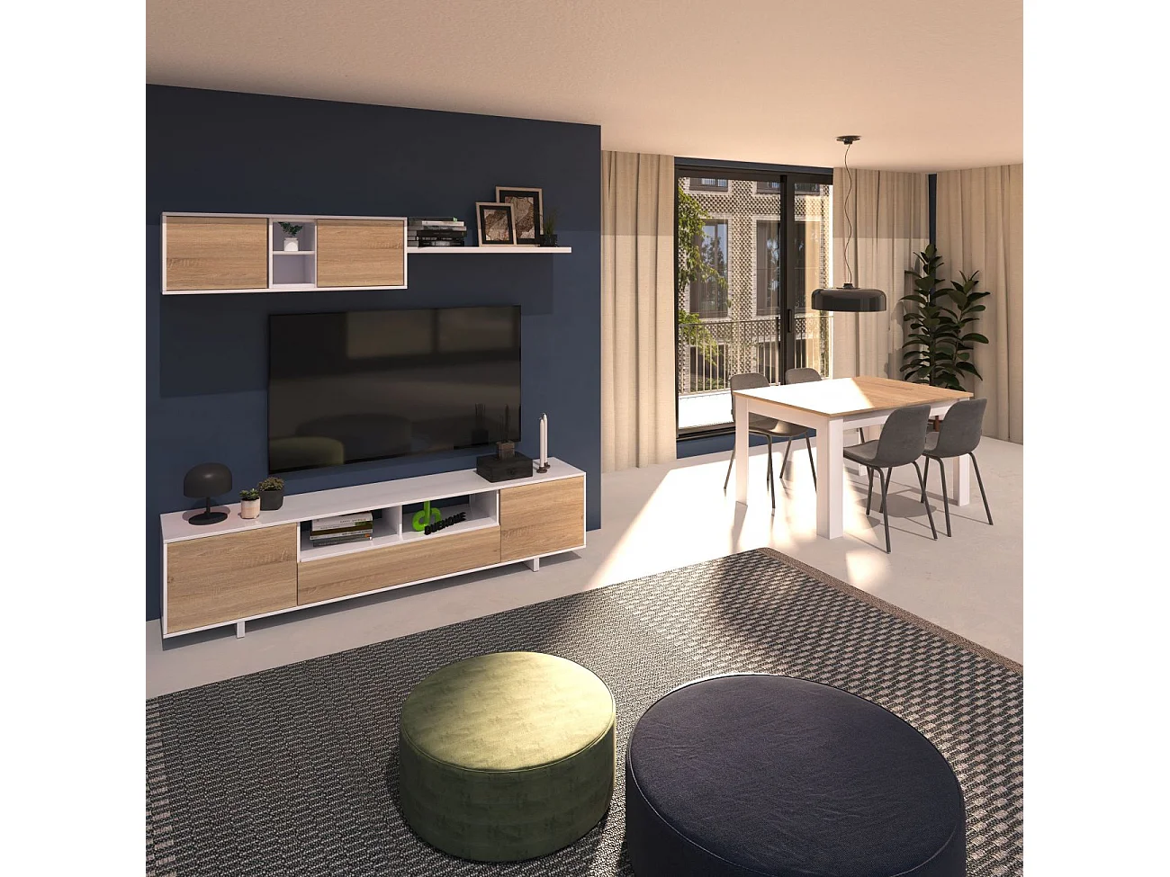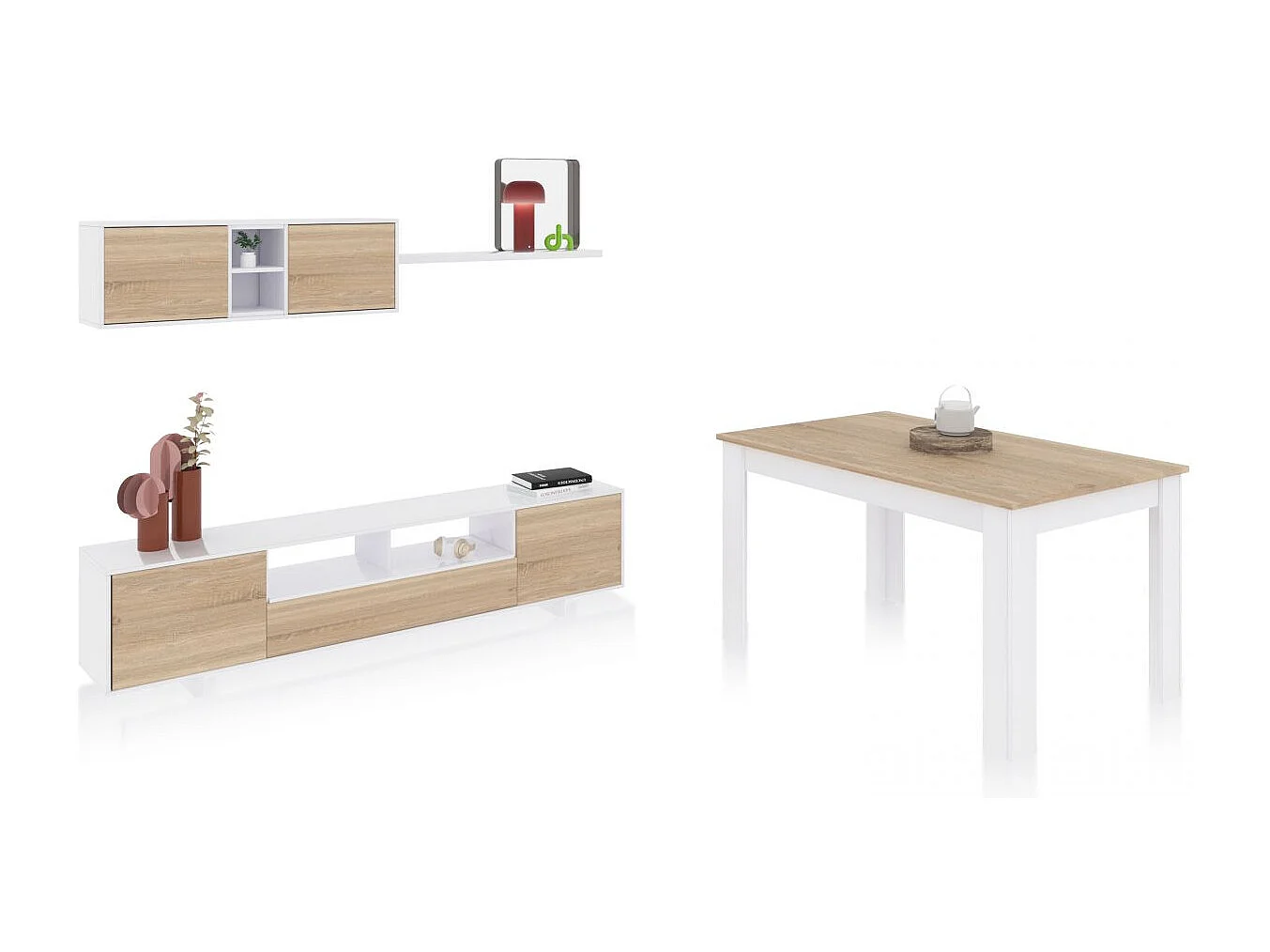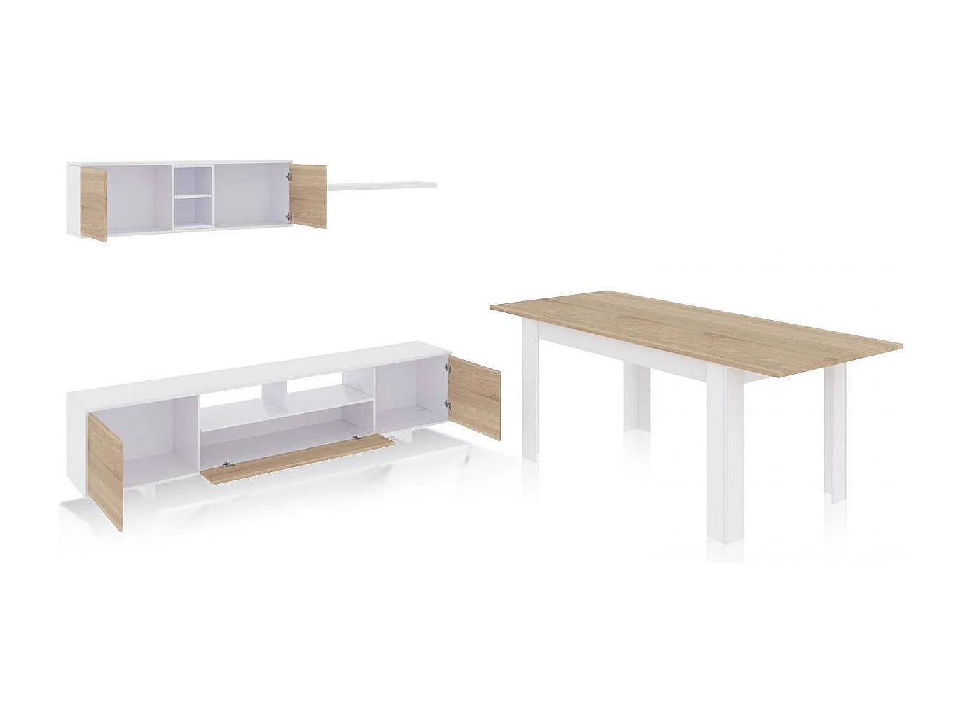 Pack salón con mesa de comedor Kenzo Plus VB Blanco Artik (Blanco Mate) - Roble Canadian