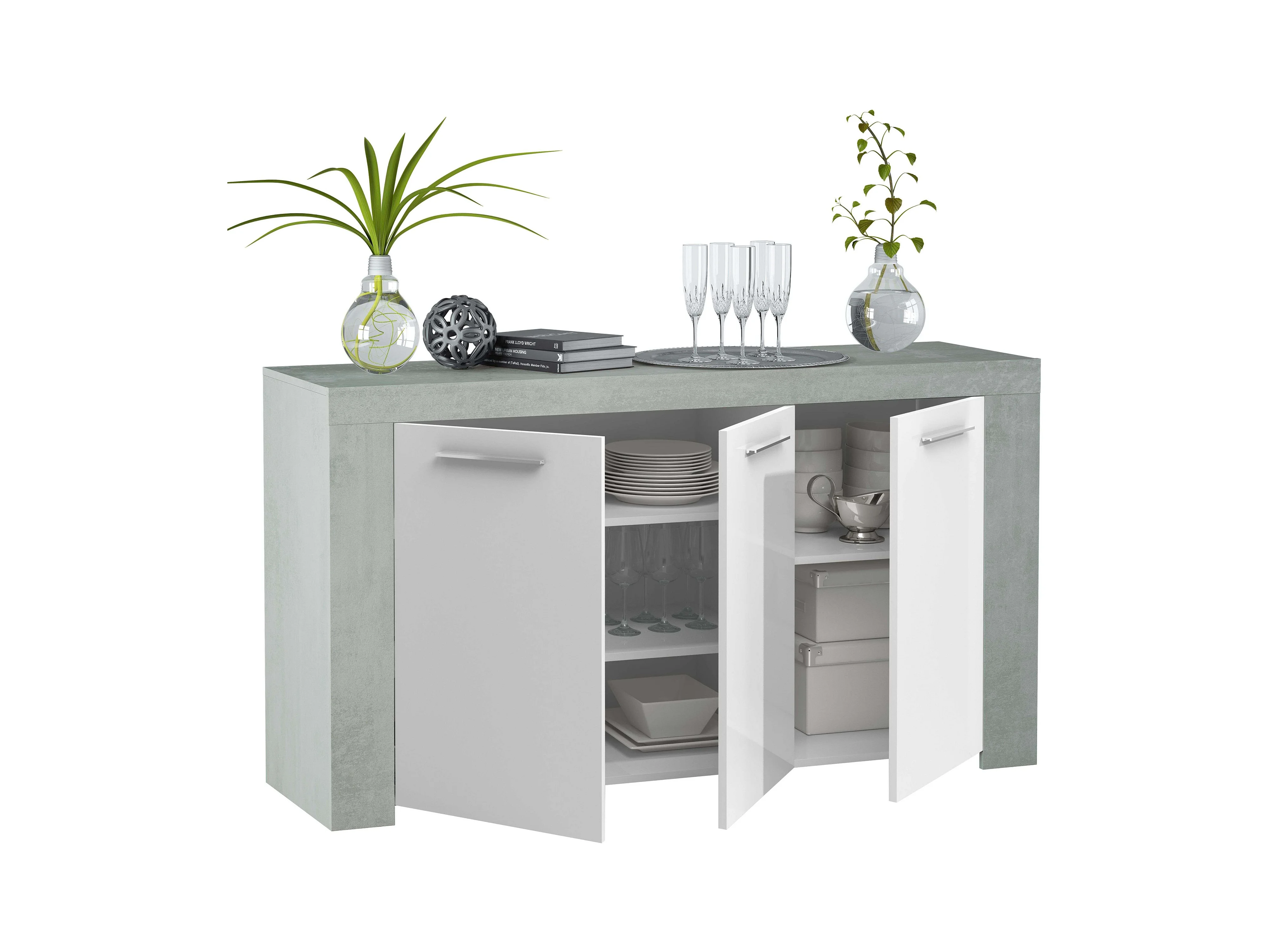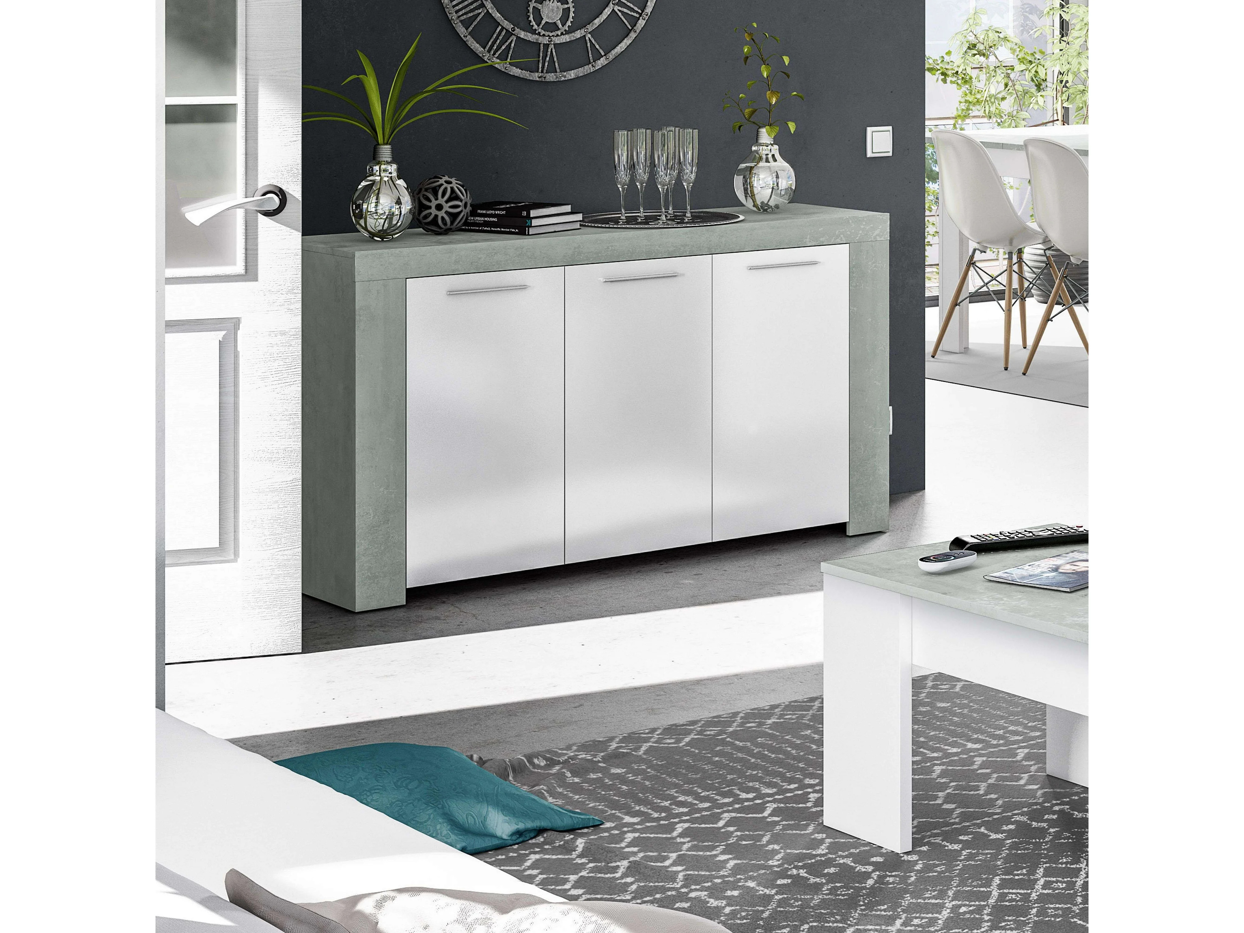 Pack Muebles Comedor Cemento y Blanco (Mesa Centro + Aparador + Comedor)