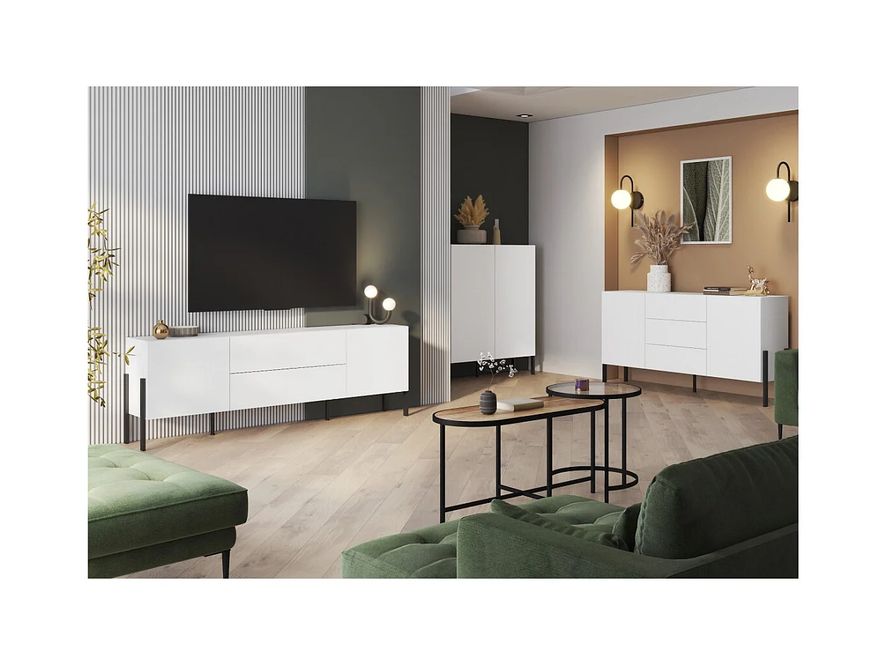 Conjunto de muebles de sala HAVANA – Aparador alto, mueble para TV, aparador bajo – Diseño moderno blanco y negro