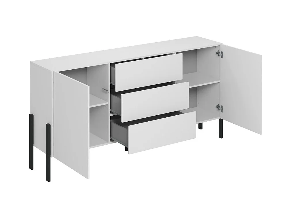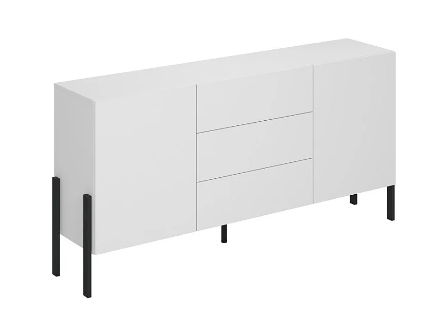 Pack salón SALMA – Mueble para TV, aparador con 2 puertas y 3 cajones y armario en blanco super mate y negro mate