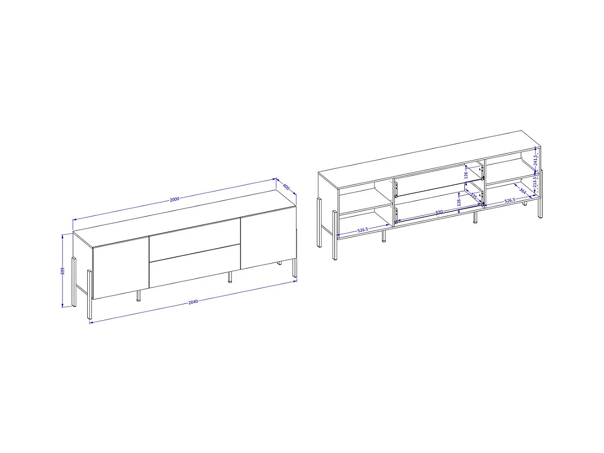 Mueble para TV de pared de 200cm de diseño. Colección MINI en color blanco.