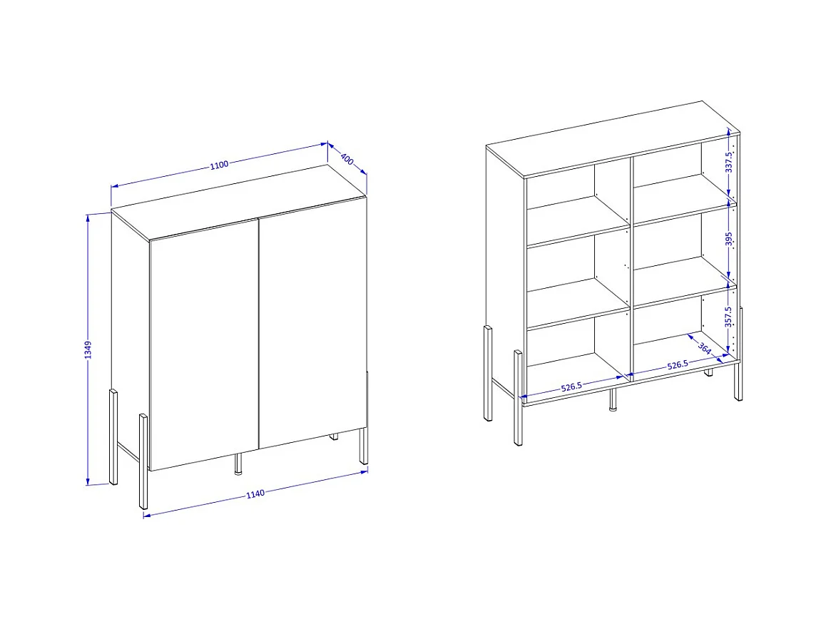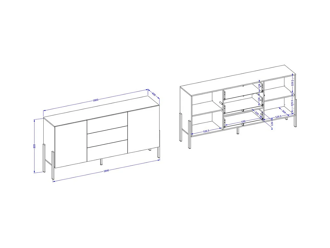 Pack salón SALMA – Buffet XL 4 puertas, armario 2 puertas & buffet 2 puertas y 3 cajones blanco super mate & negro mate