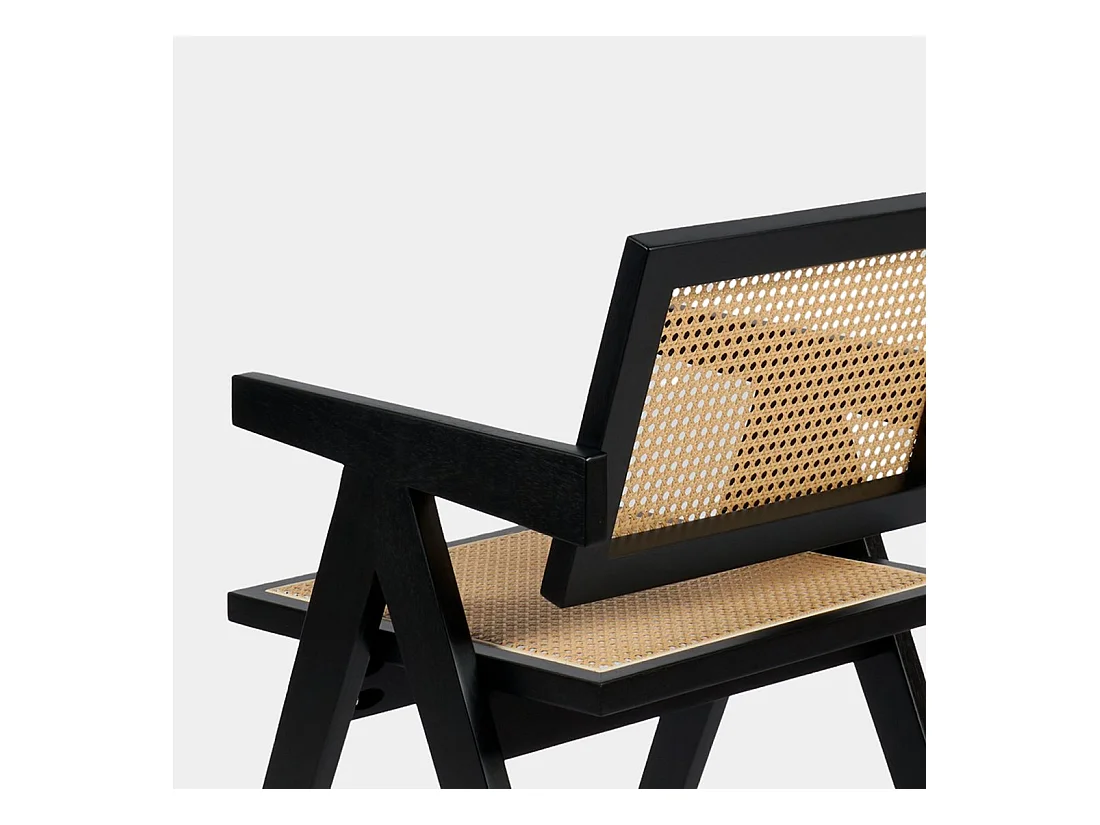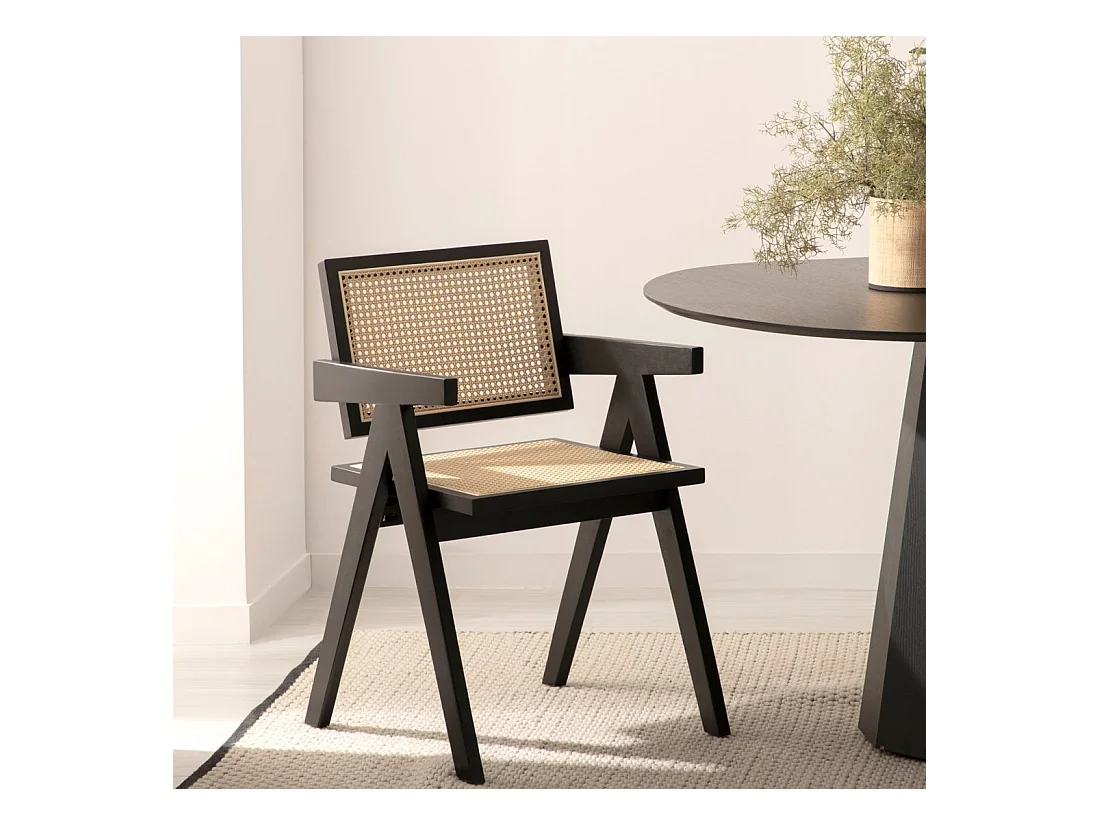 Juego de 2 sillas de comedor de ratán con respaldo de ratán y asiento acolchado, color negro