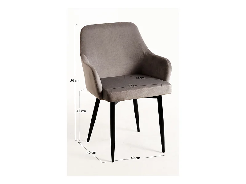 Juego de 2 sillas de terciopelo con reposabrazos "Velma" - Gris