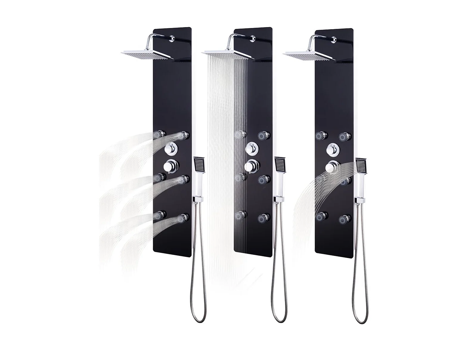 Panel de ducha con rociador grifo cristal acero inoxidable 130 cm negro 02_0003435