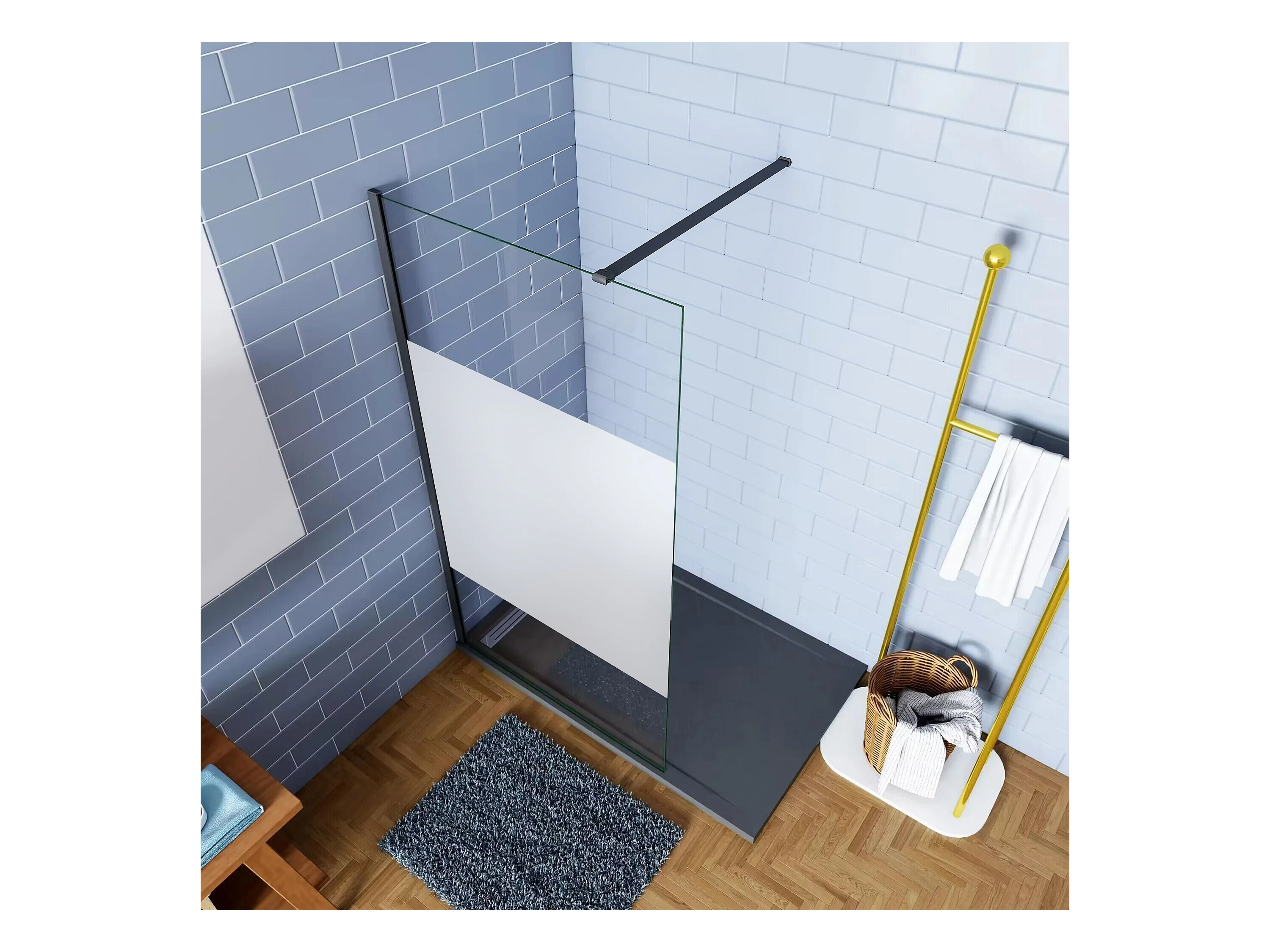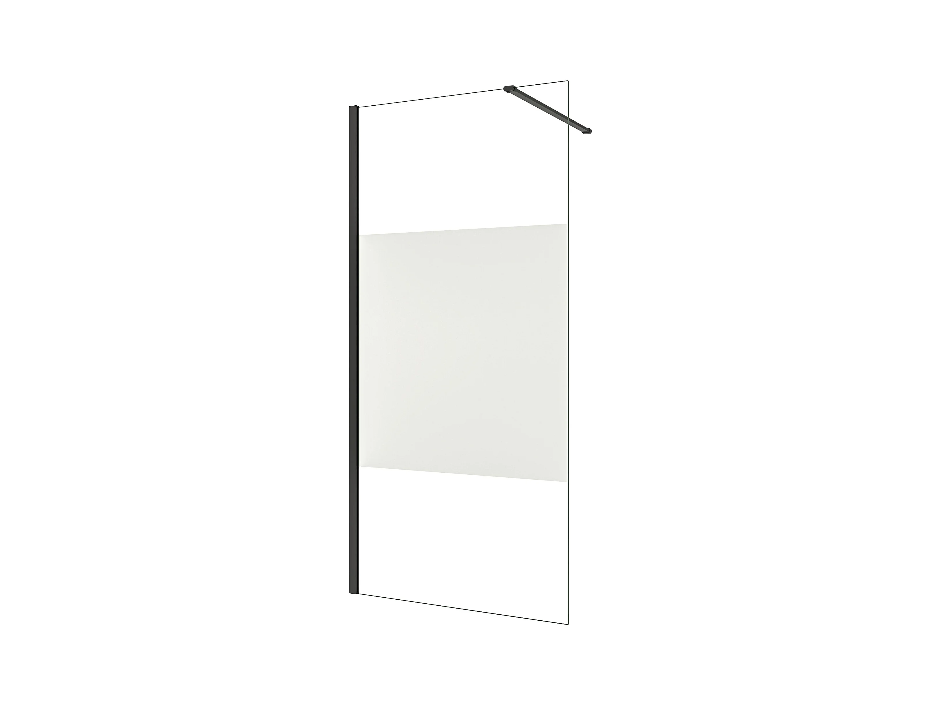 Panel de ducha Serigrafiado Central Vidrio 8mm con Película de Seguridad a Prueba de Explosiones (88-90)x200cm con Barra1 Negra mate 90cm-AICA