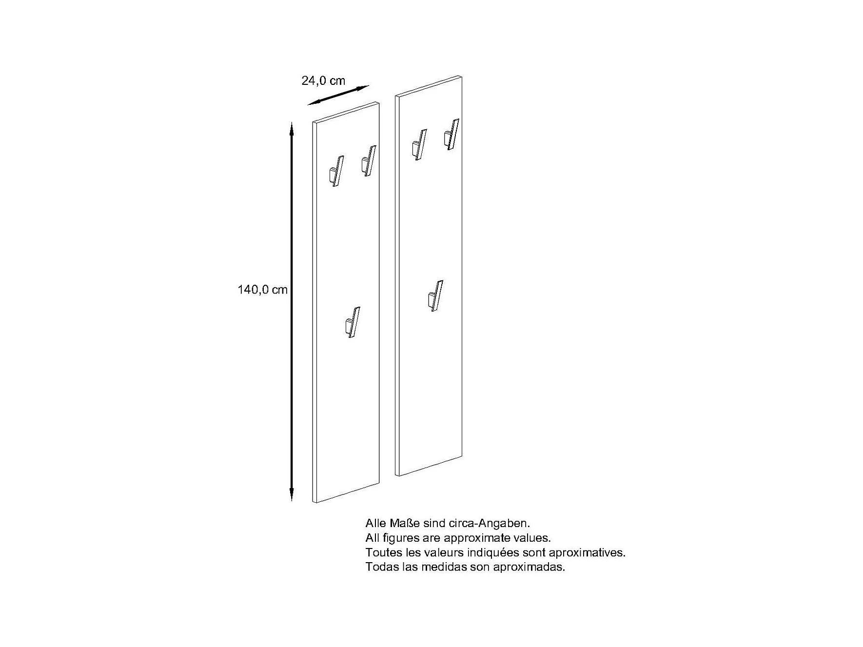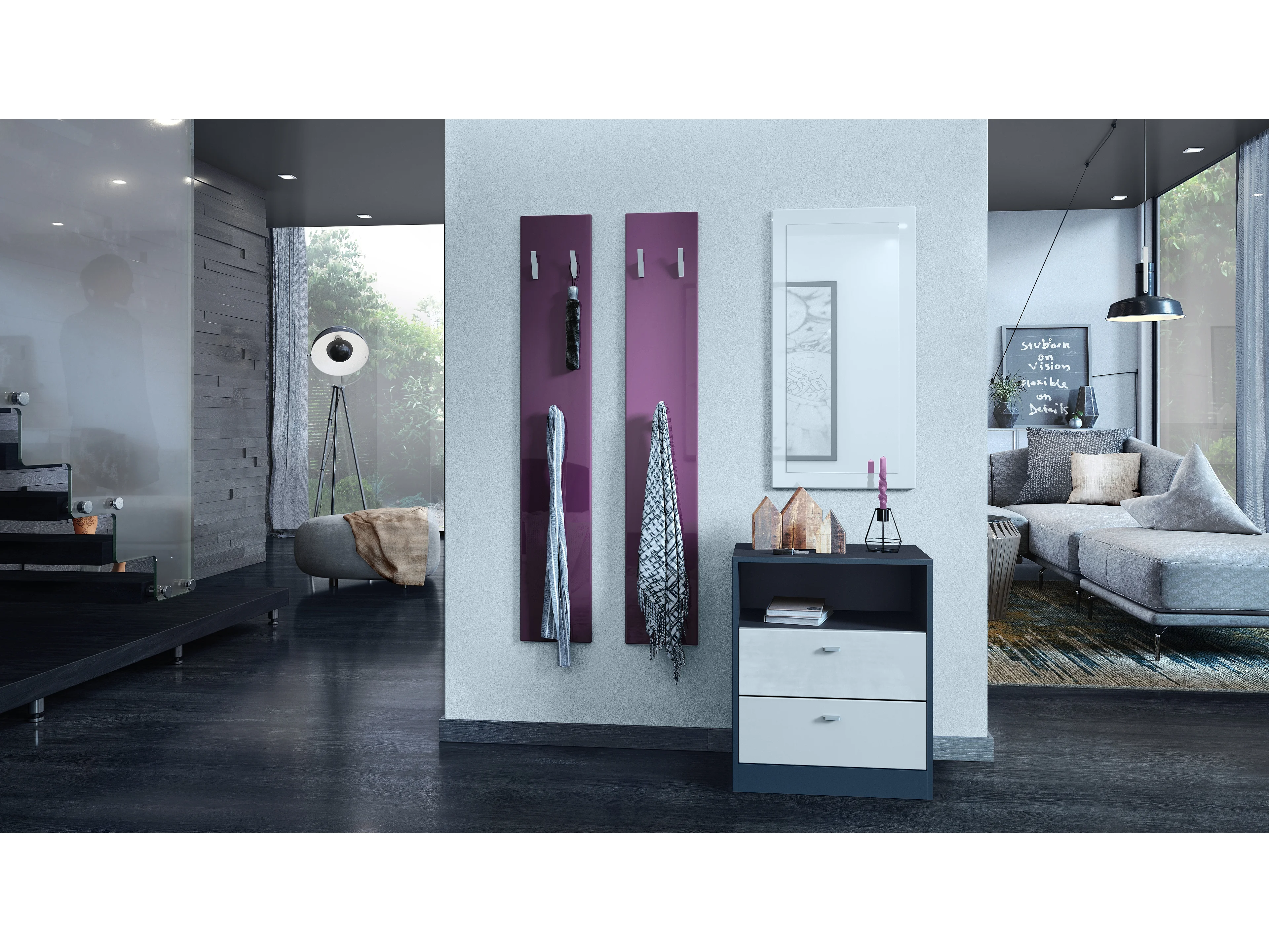Panel de Pared 140, Hecho en Alemania, Panel Perchero con 2 Paneles, zarzamora de alto brillo (je 24 x 140 x 2 cm)