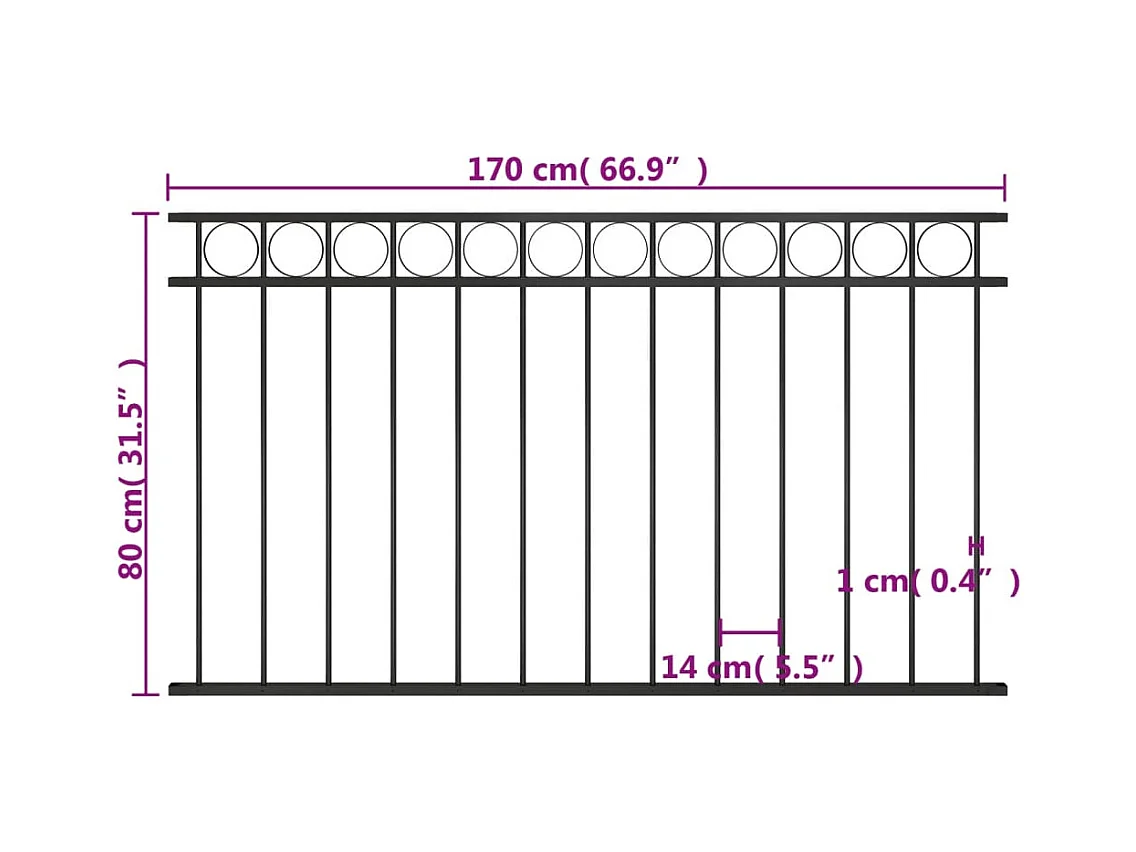 Valla de jardín de acero negro 1,7x0,8 m ES771470