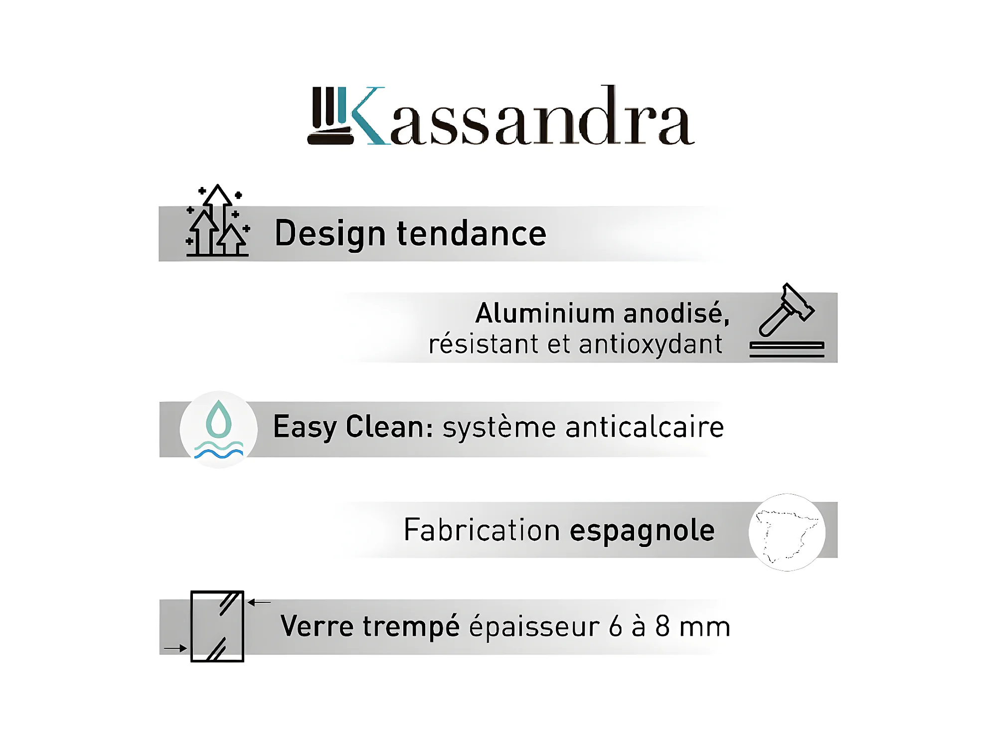 Panel fijo de ducha 120-121 cm FRESH LEVANTE Negro Cristal serigrafiado