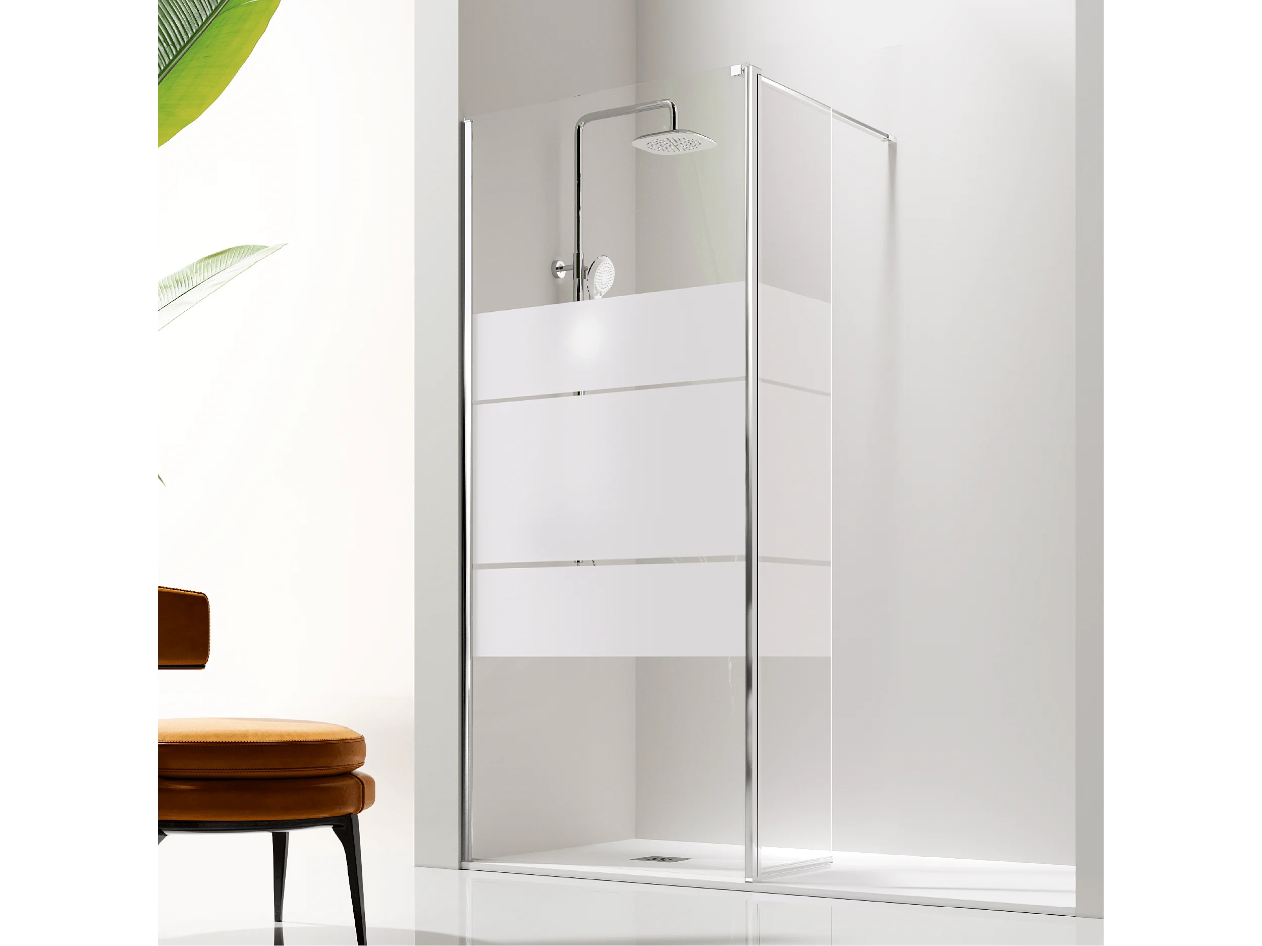 Panel fijo de ducha + Puerta abatible GIRO Cristal serigrafiado
