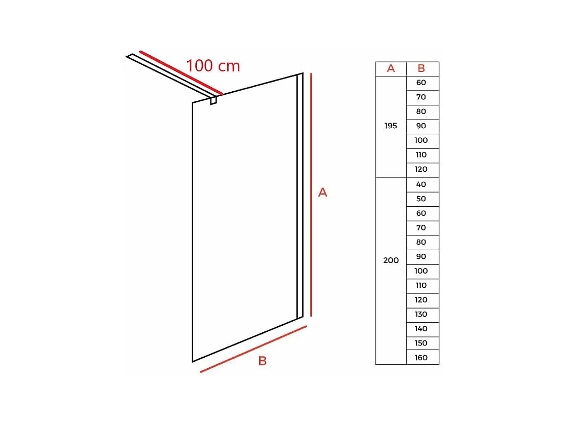 Panel fijo de ducha WALK IN Perfil Cromado Grosor Cristal 8 mm