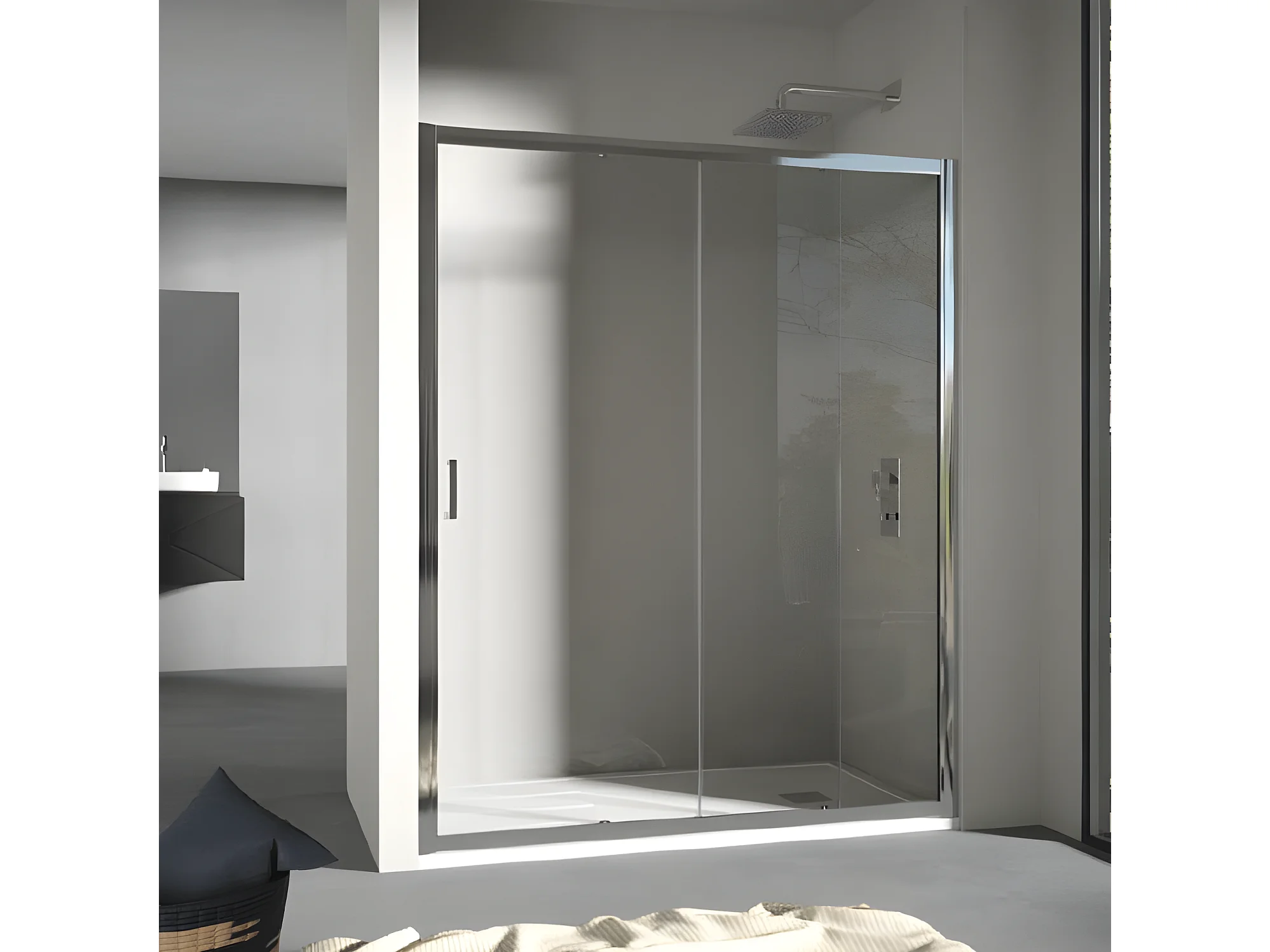 Frontal de ducha + Puerta Corredera 160 cm GRANT Cristal serigrafiado Lateral fijo: 75 cm