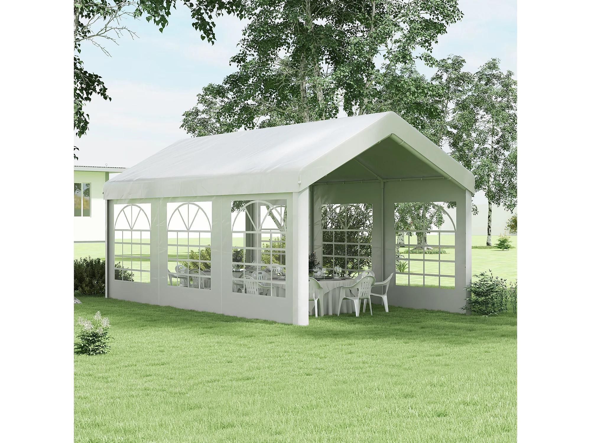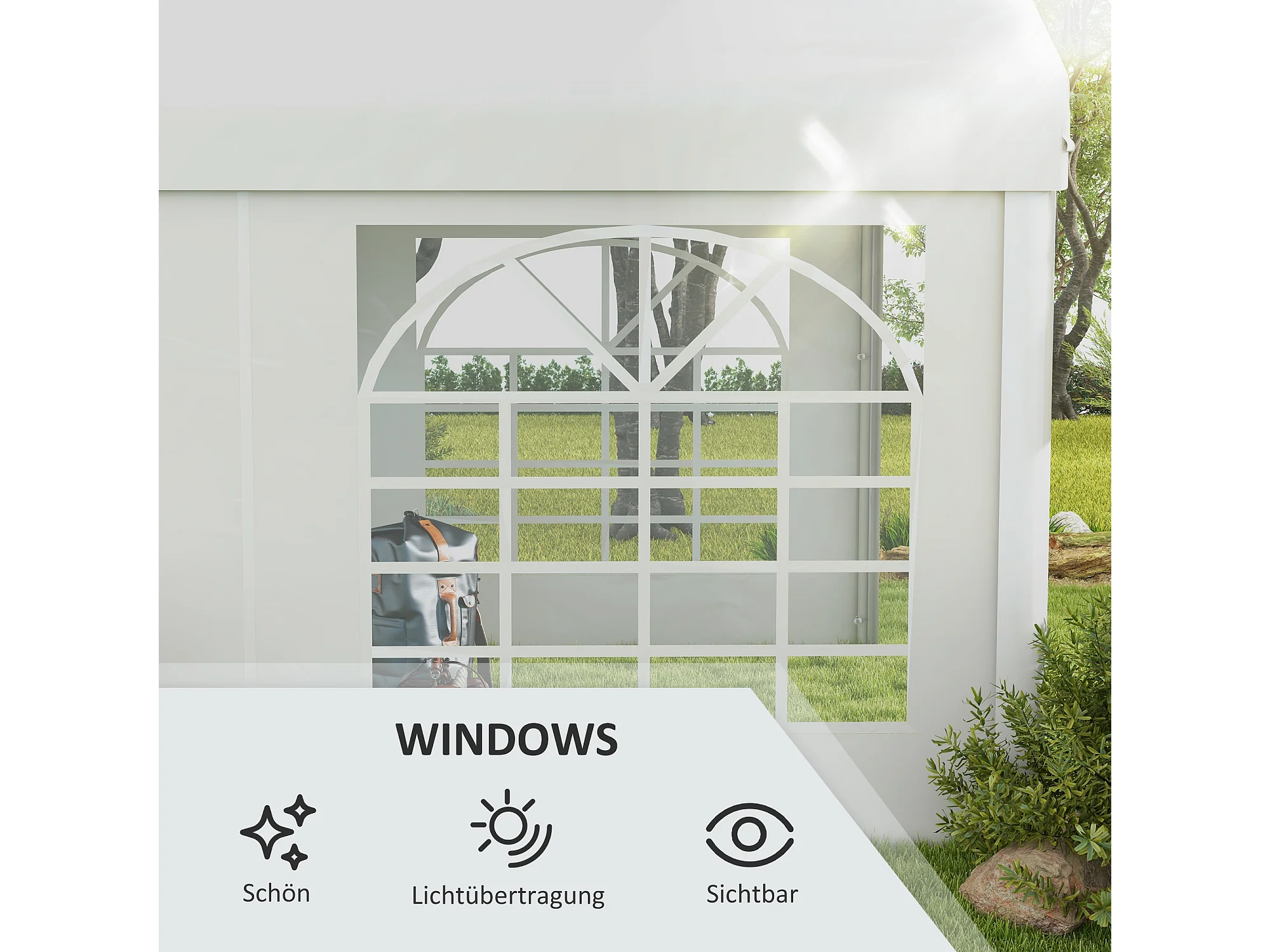 Panel lateral con ventana para pabellón, resistente al agua y a los rayos UV, PVC blanco (597x200cm)