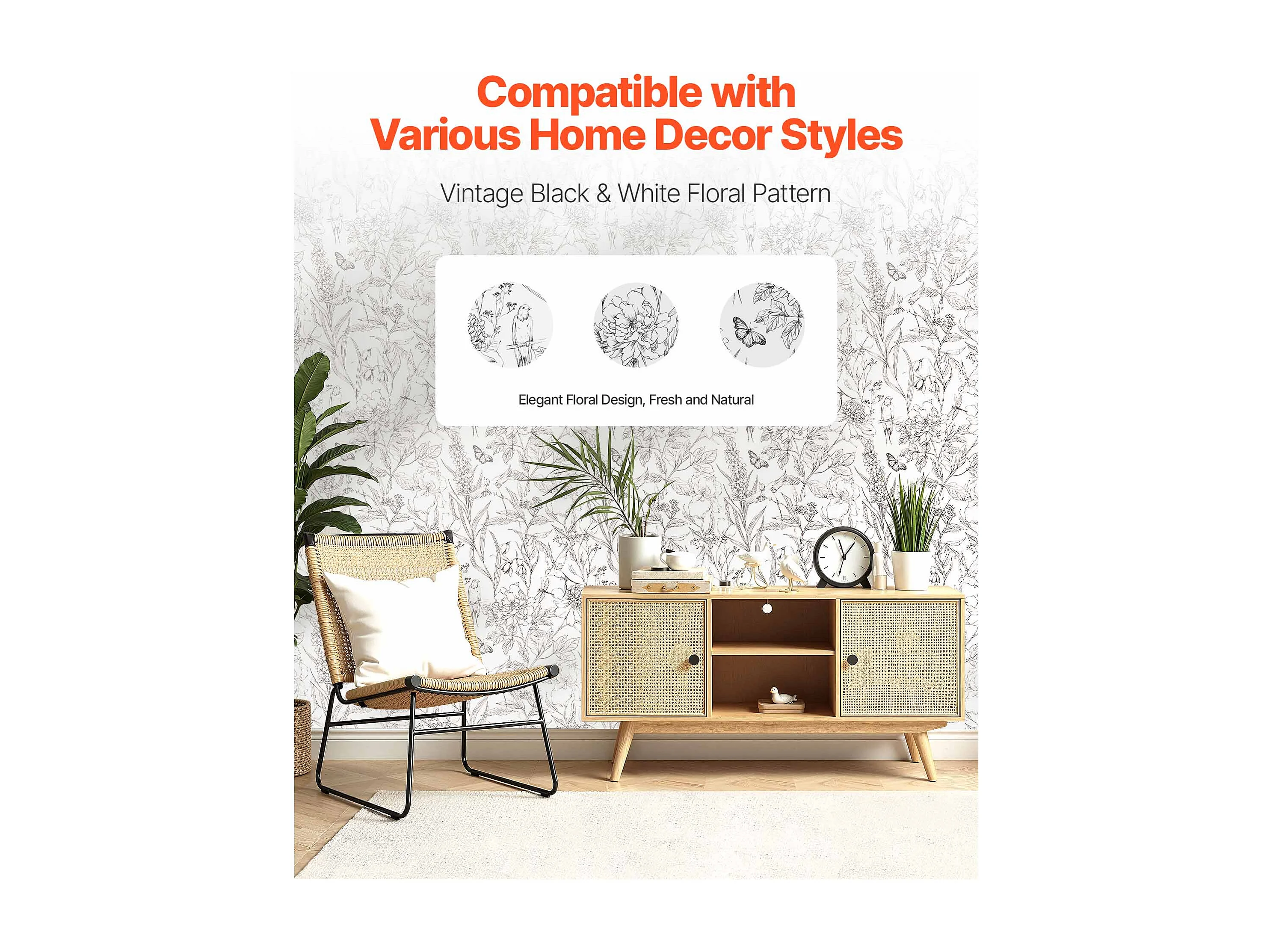 Papel Pintado Adhesivo de Pared SucceBuy, 45 cm x 10 m, Rollo Papel Pintado Autoadhesivo Vinilo, Motif Floral Botánico Blanco, Impermeable