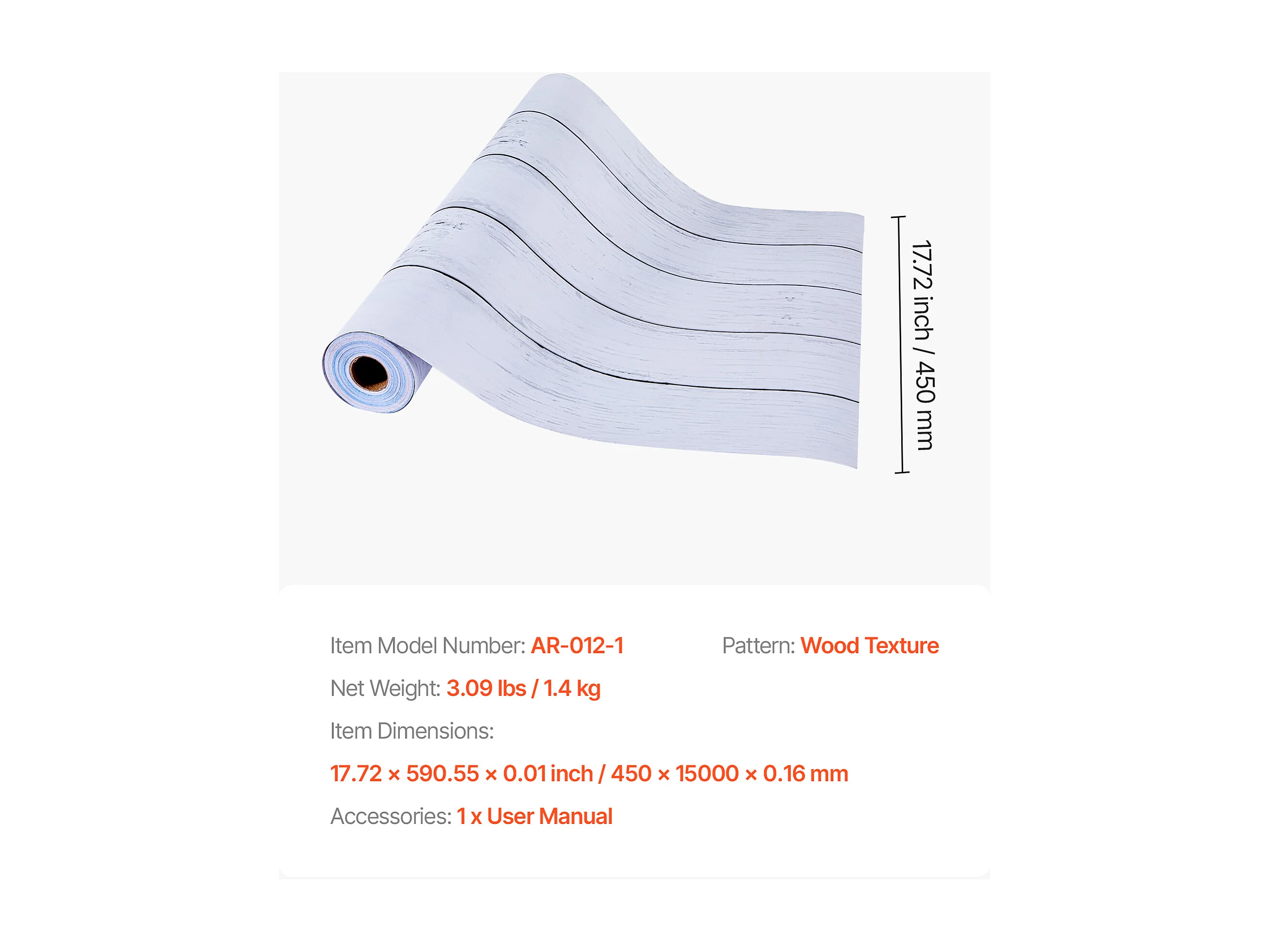 Papel Pintado Adhesivo de Pared SucceBuy, 45 cm x 15 m, Rollo Papel Pintado Autoadhesivo en Vinilo, Motivo Textura Madera Blanca, Impermeable