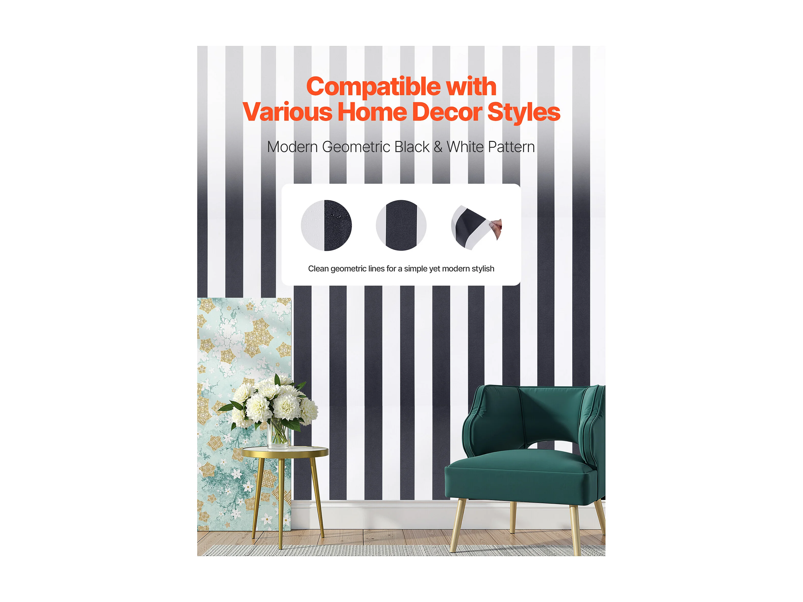 Papel Pintado Adhesivo de Pared SucceBuy, 45 cm x 15 m, Rollo Papel Pintado Autoadhesivo Vinilo, Motivo Geométrico Moderno Negro Blanco, Estanco
