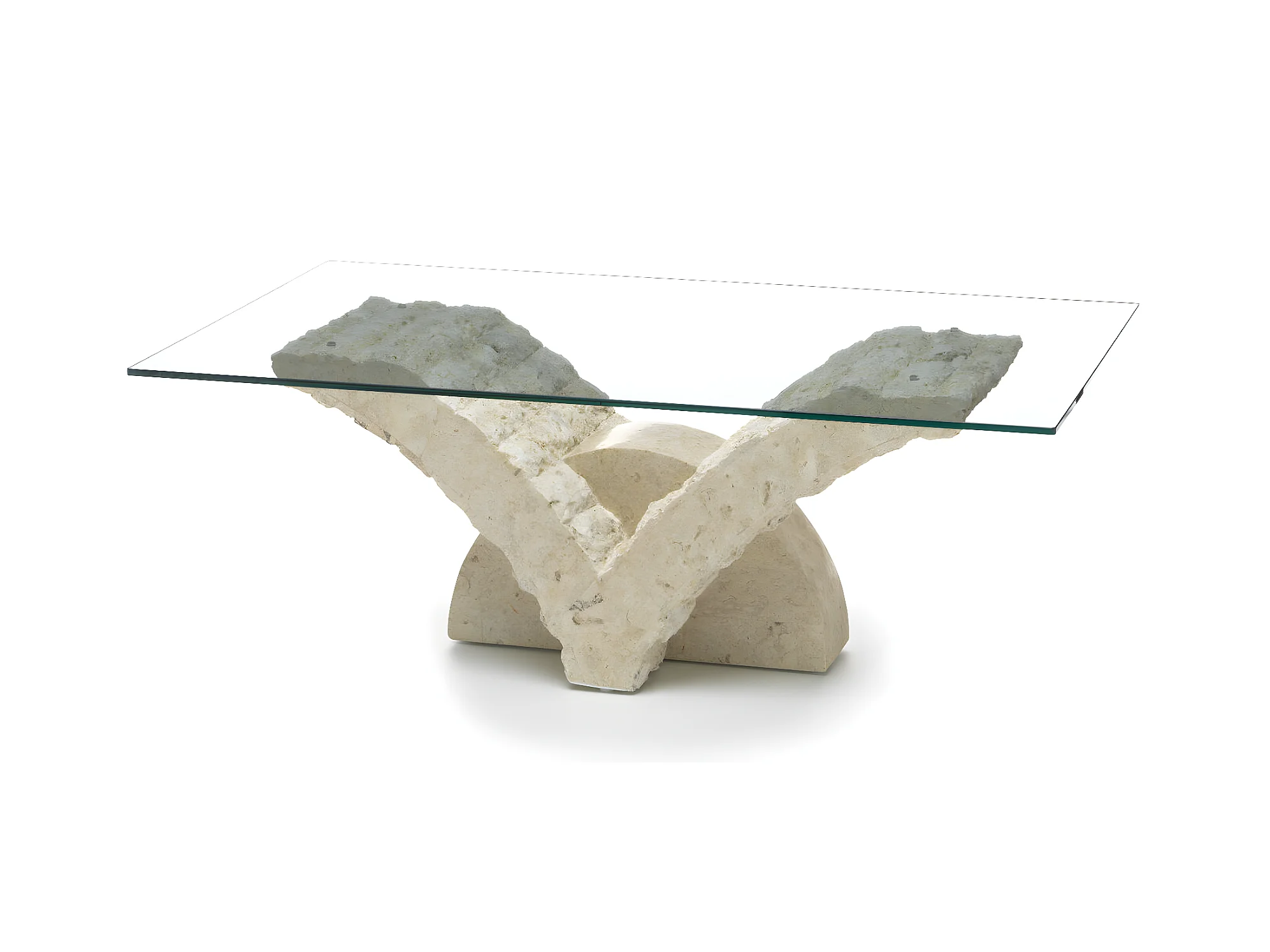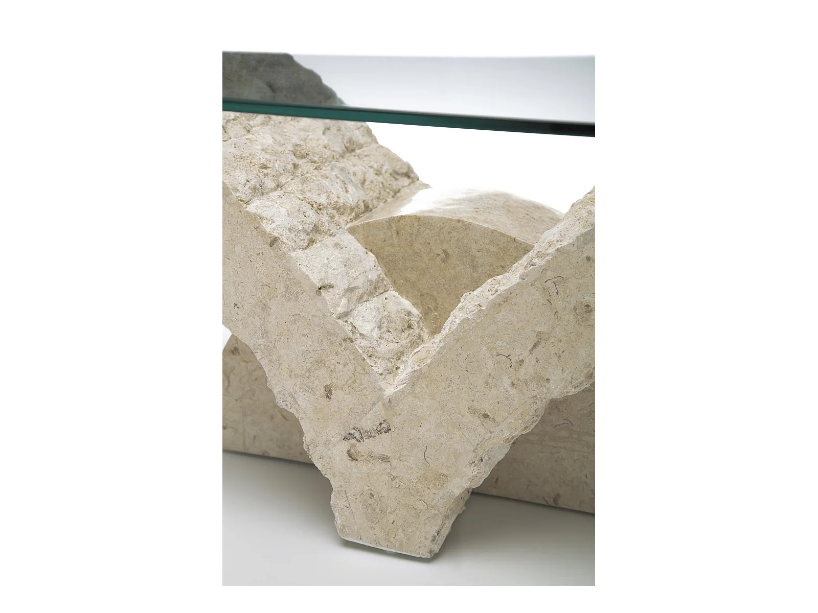 Sasso grande - Mesa de centro (74 x 123 x 27 h) en piedra fósil beige