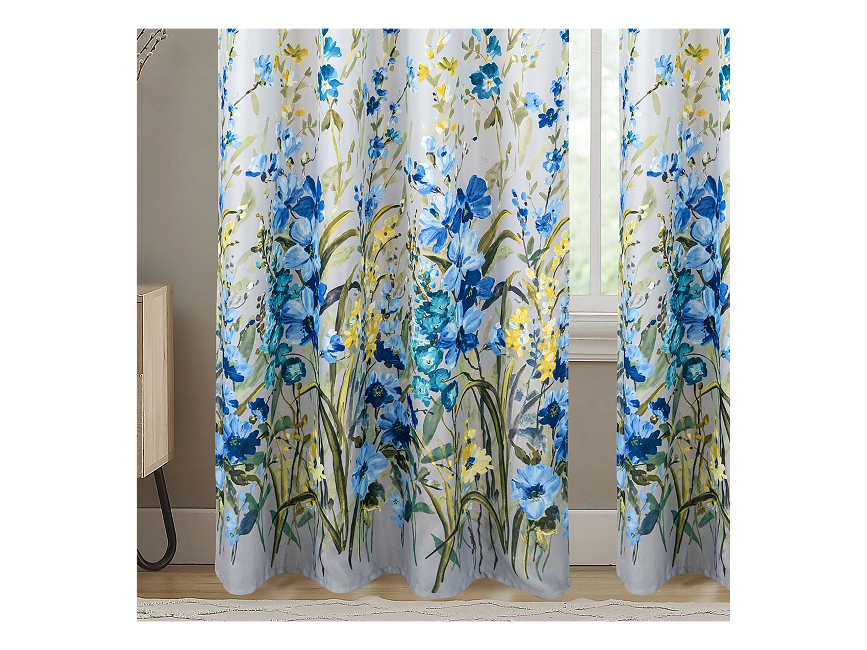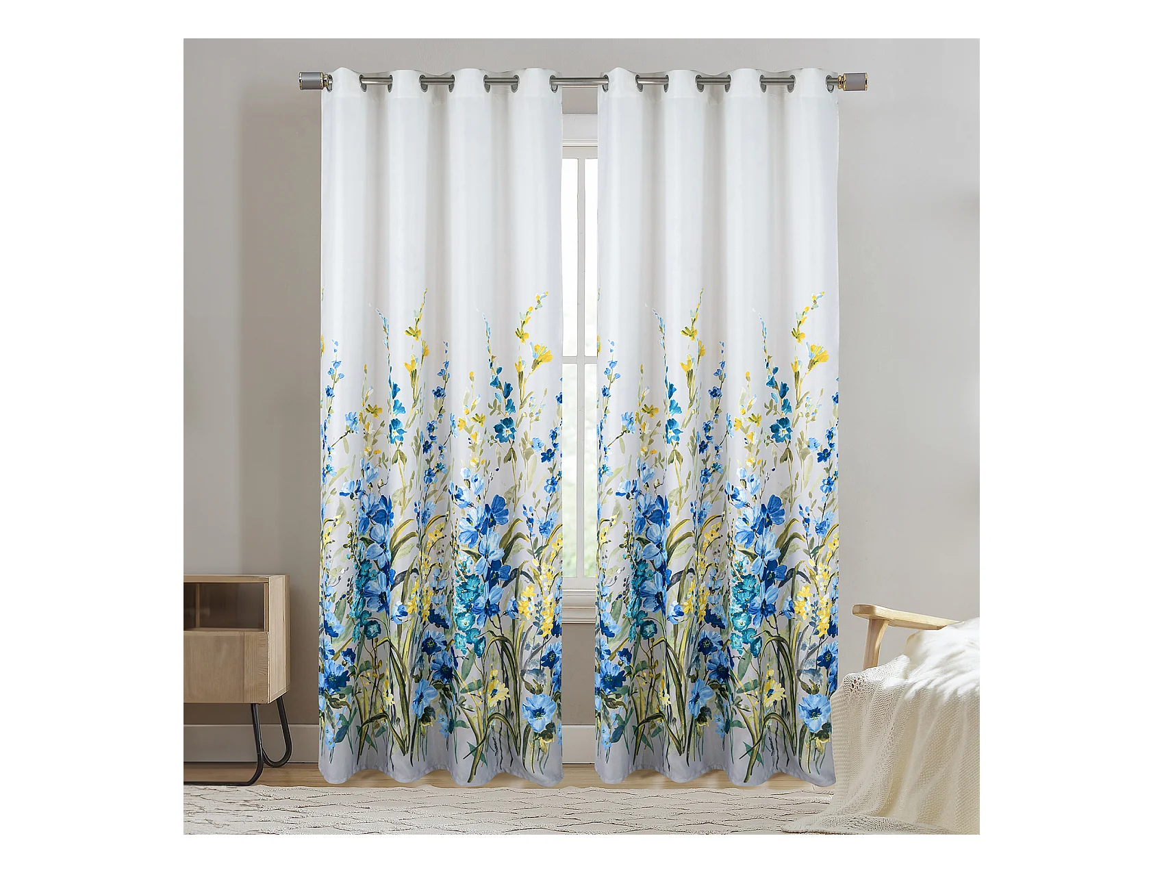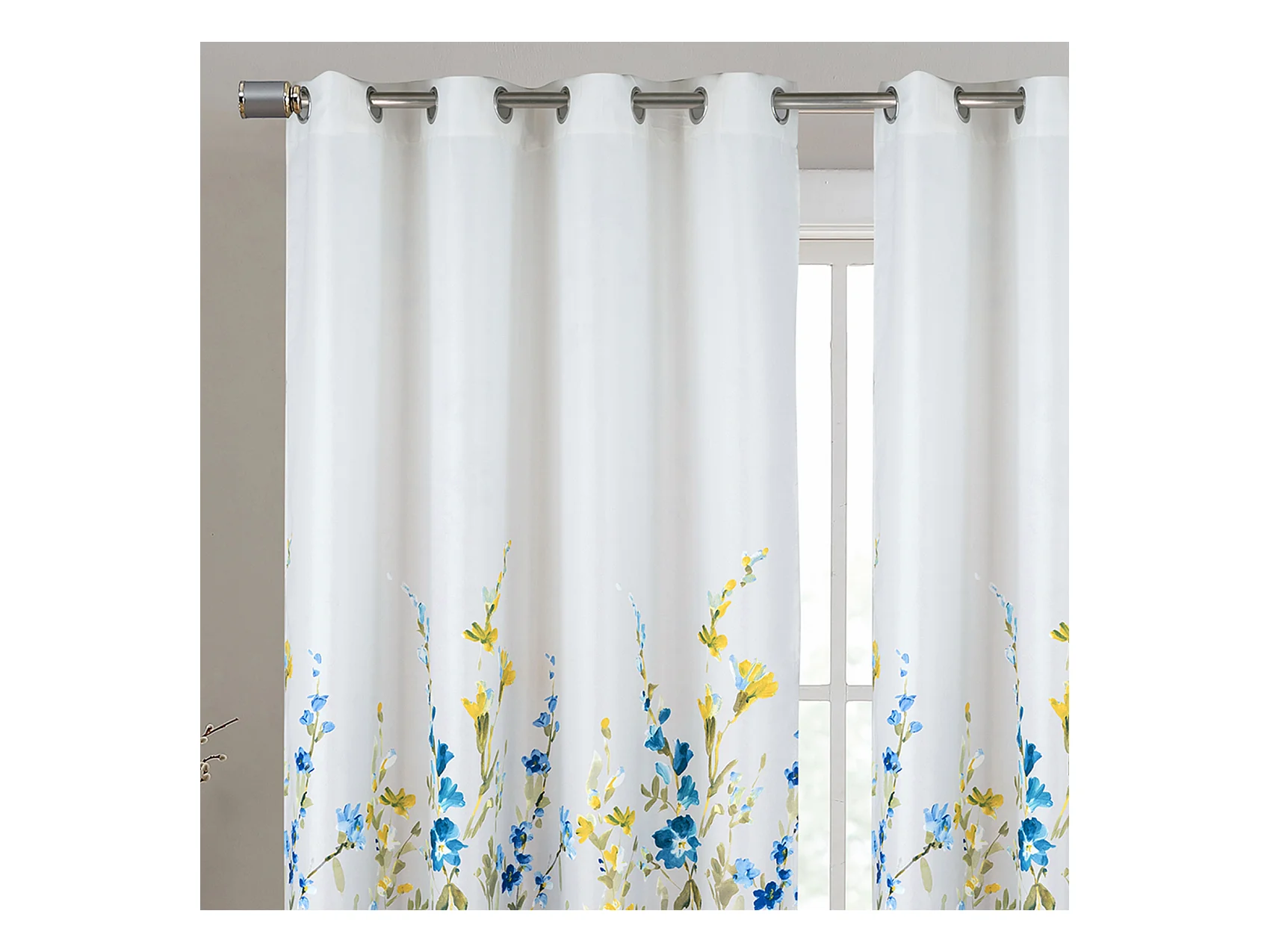 Par de Cortinas con Ojales y Motivo Floral Multicolor 140 x 260 cm