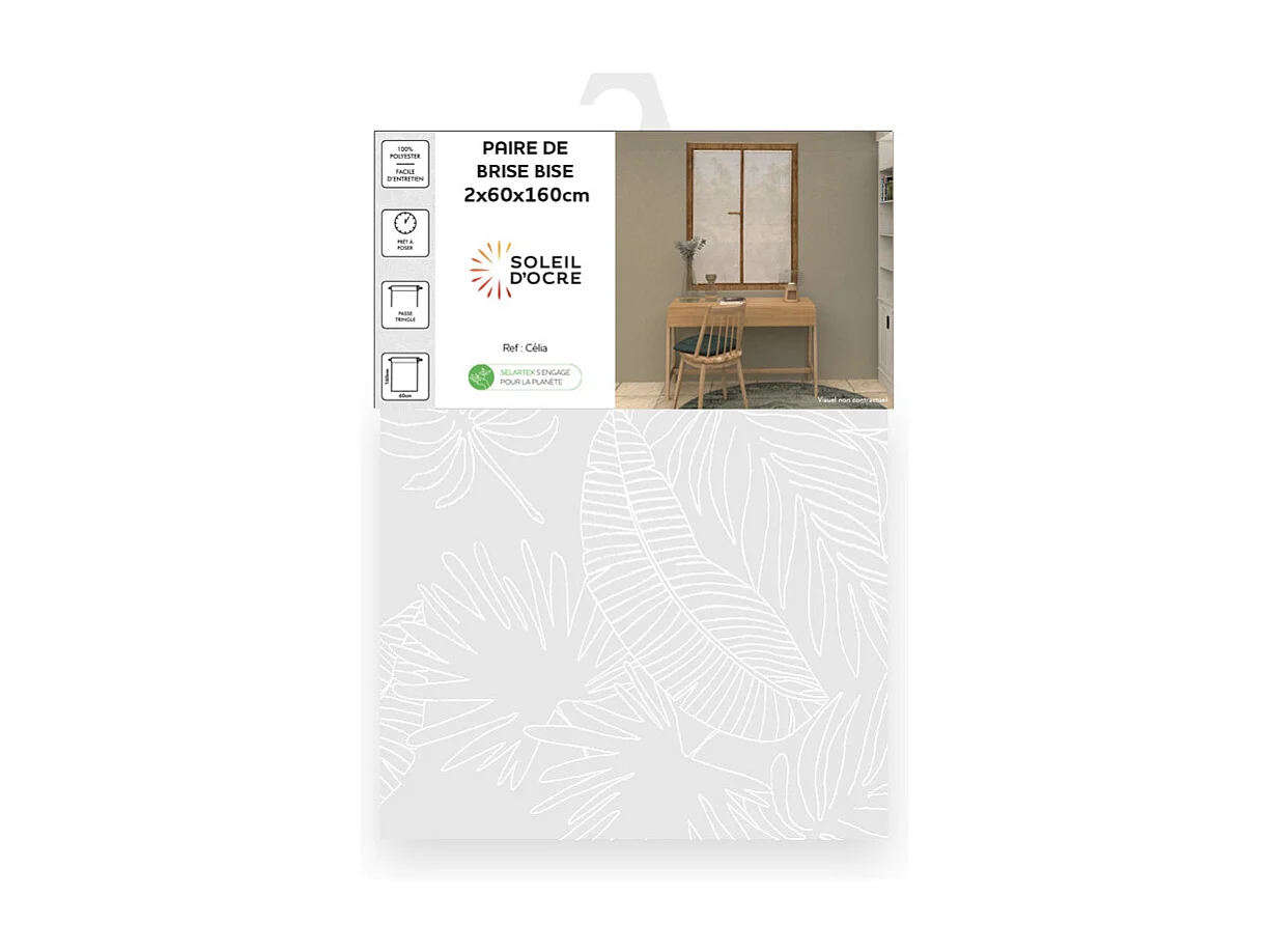 Par de visillos 60x160 cm CELIA blanco, por Soleil d'Ocre