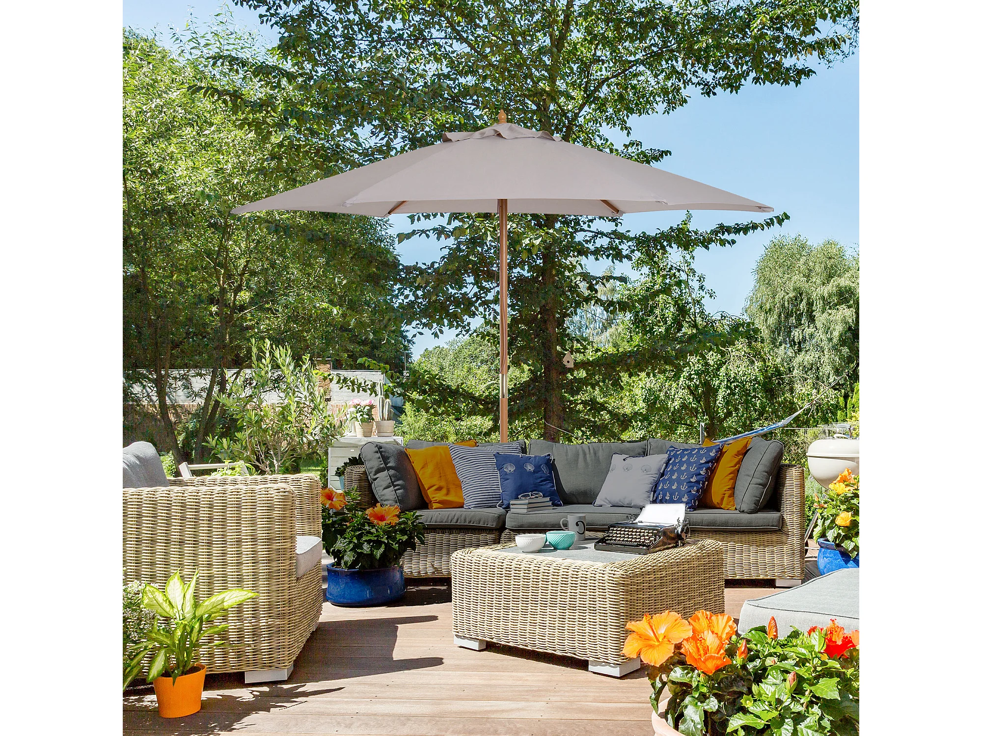 Sombrilla de jardín con base portátil gris topo ES611028
