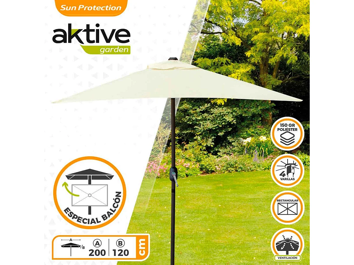 Parasol de balcón Aktive Garden con mástil de aluminio crema 240x200x120 cm
