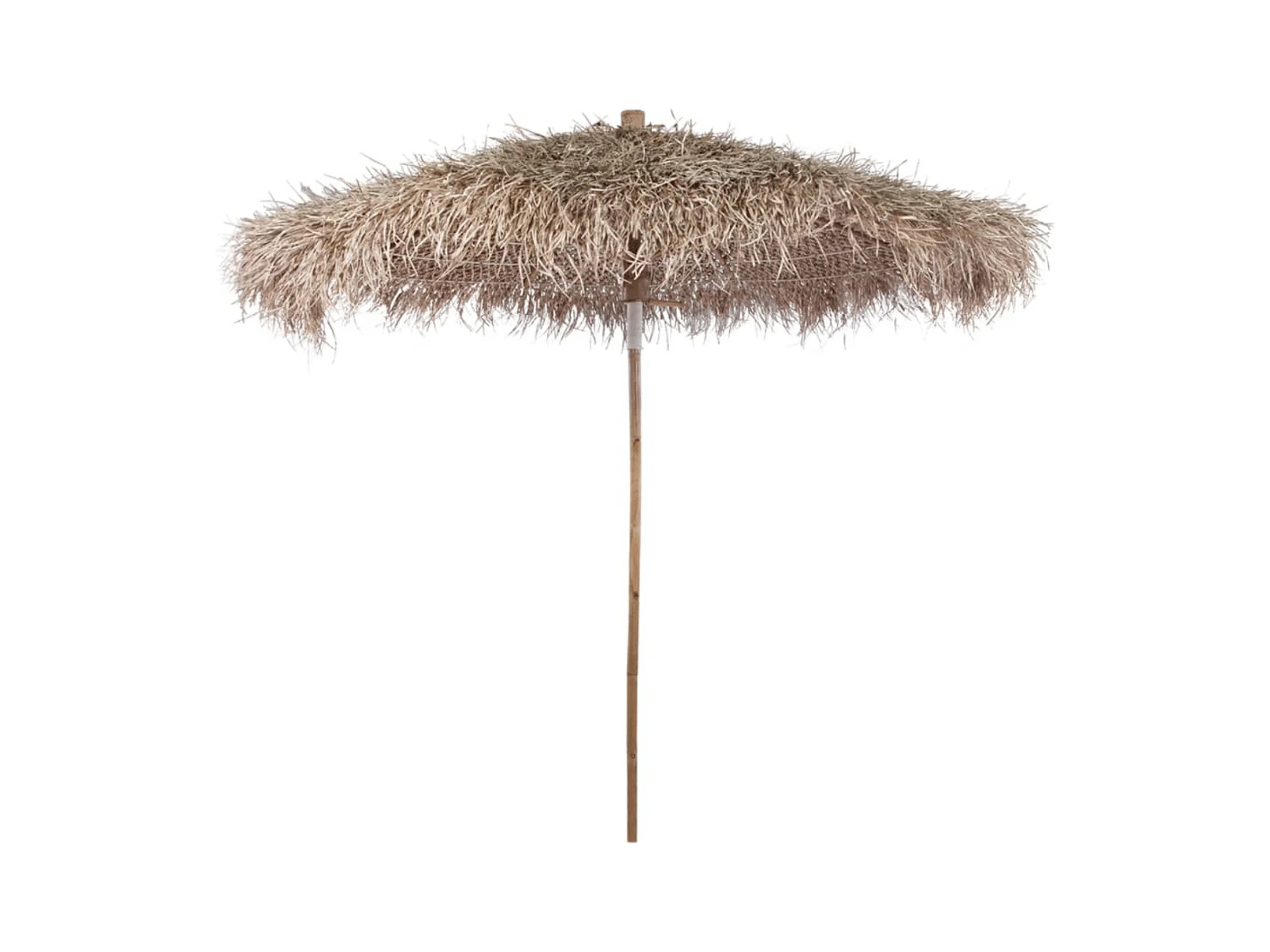 Parasol de bambú con techo de hojas de banano