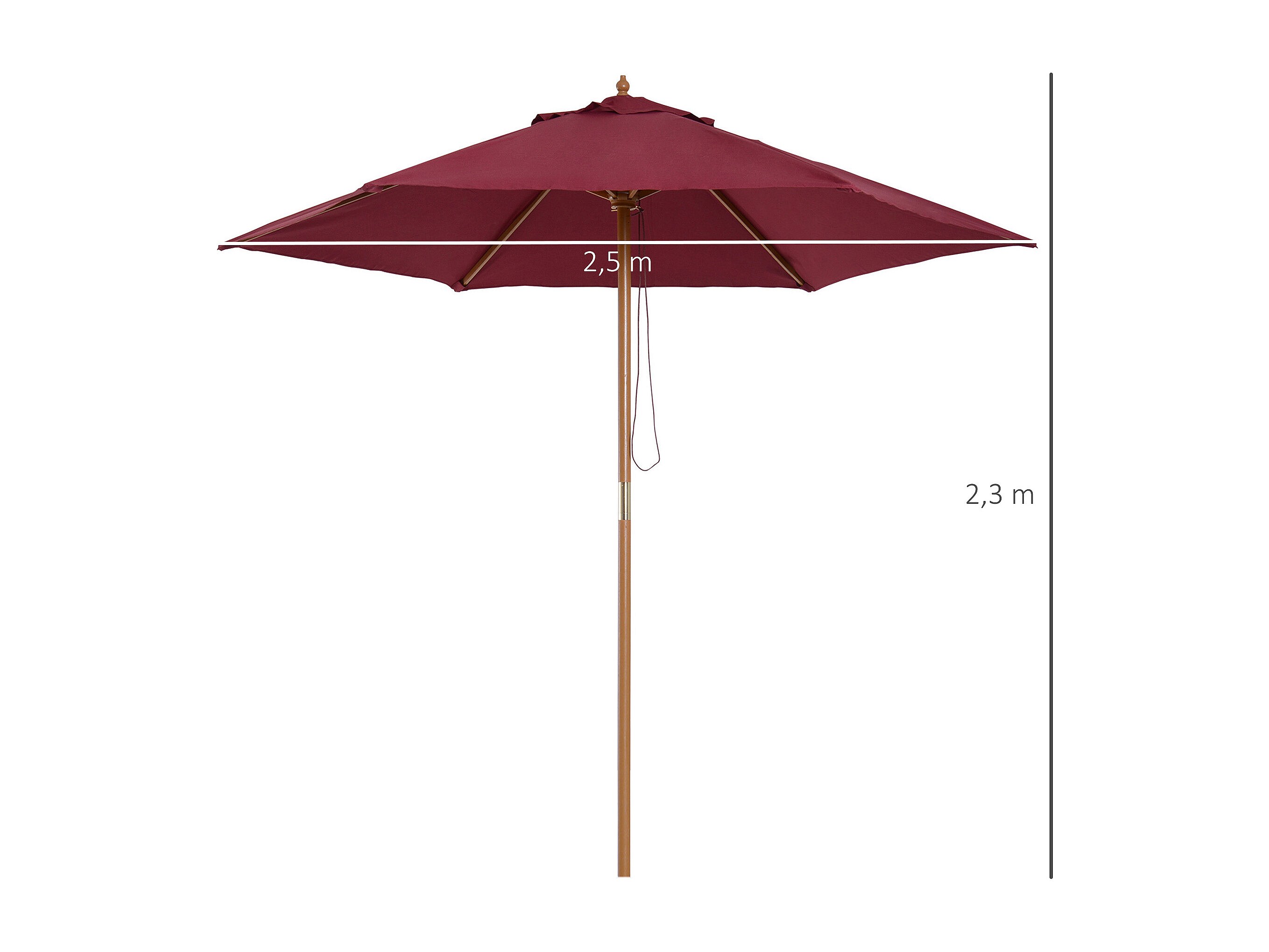 Sombrilla de jardín con palo de madera color burdeos 330 cm